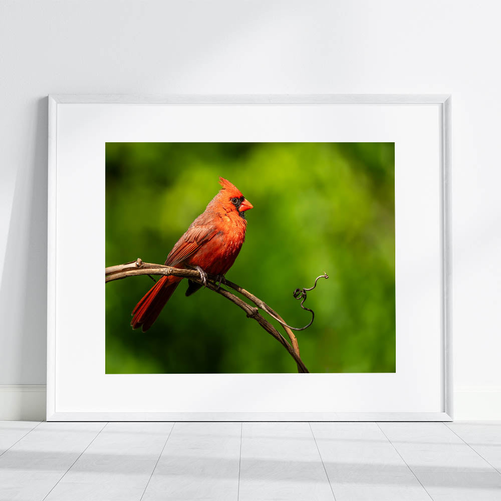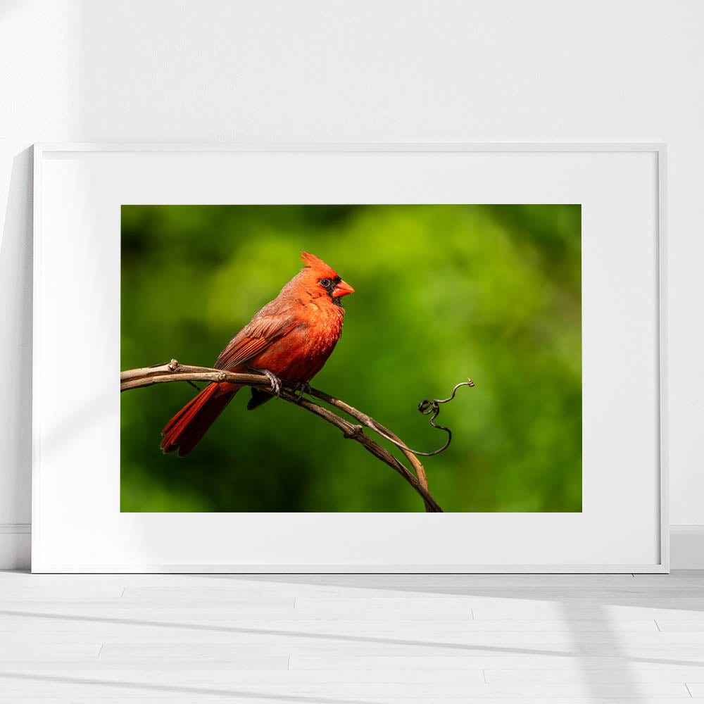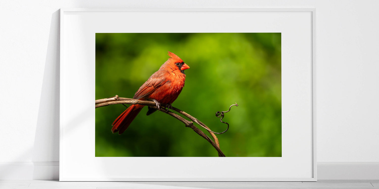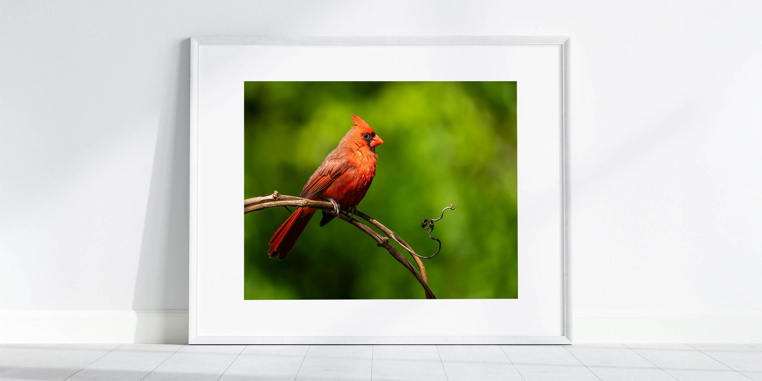 • High-quality print that captures the intricate details of the cardinal’s feathers and the textured vine.