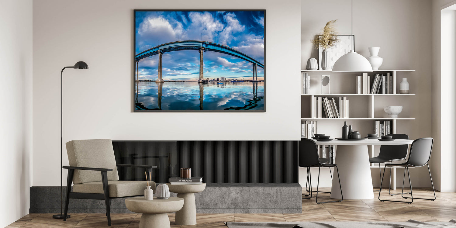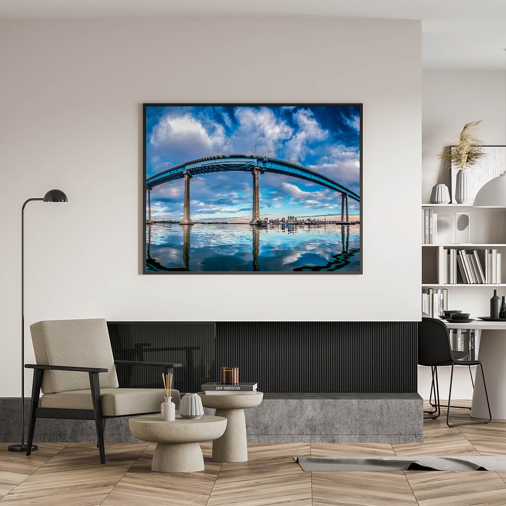 Expansive Coronado Bridge Art – San Diego Waterfront Reflection Decor
