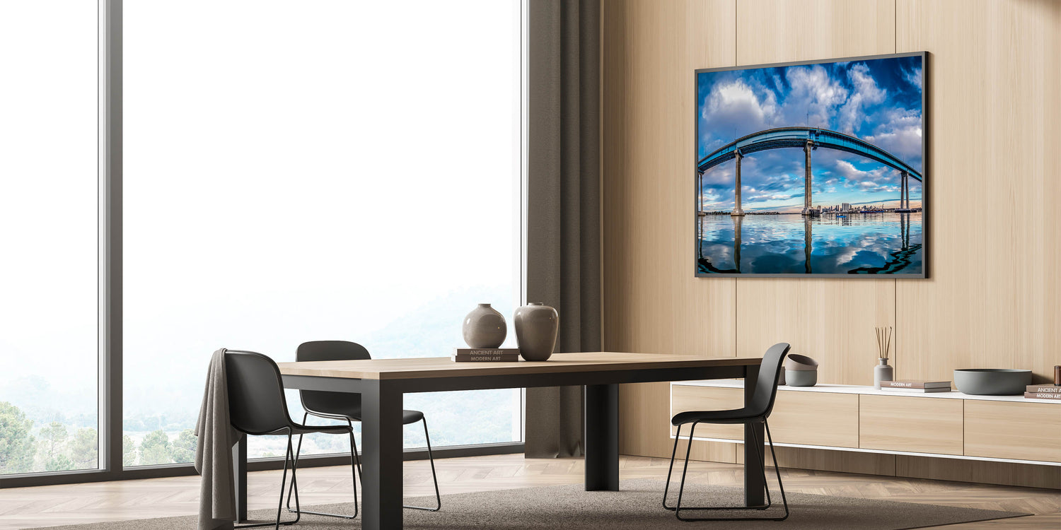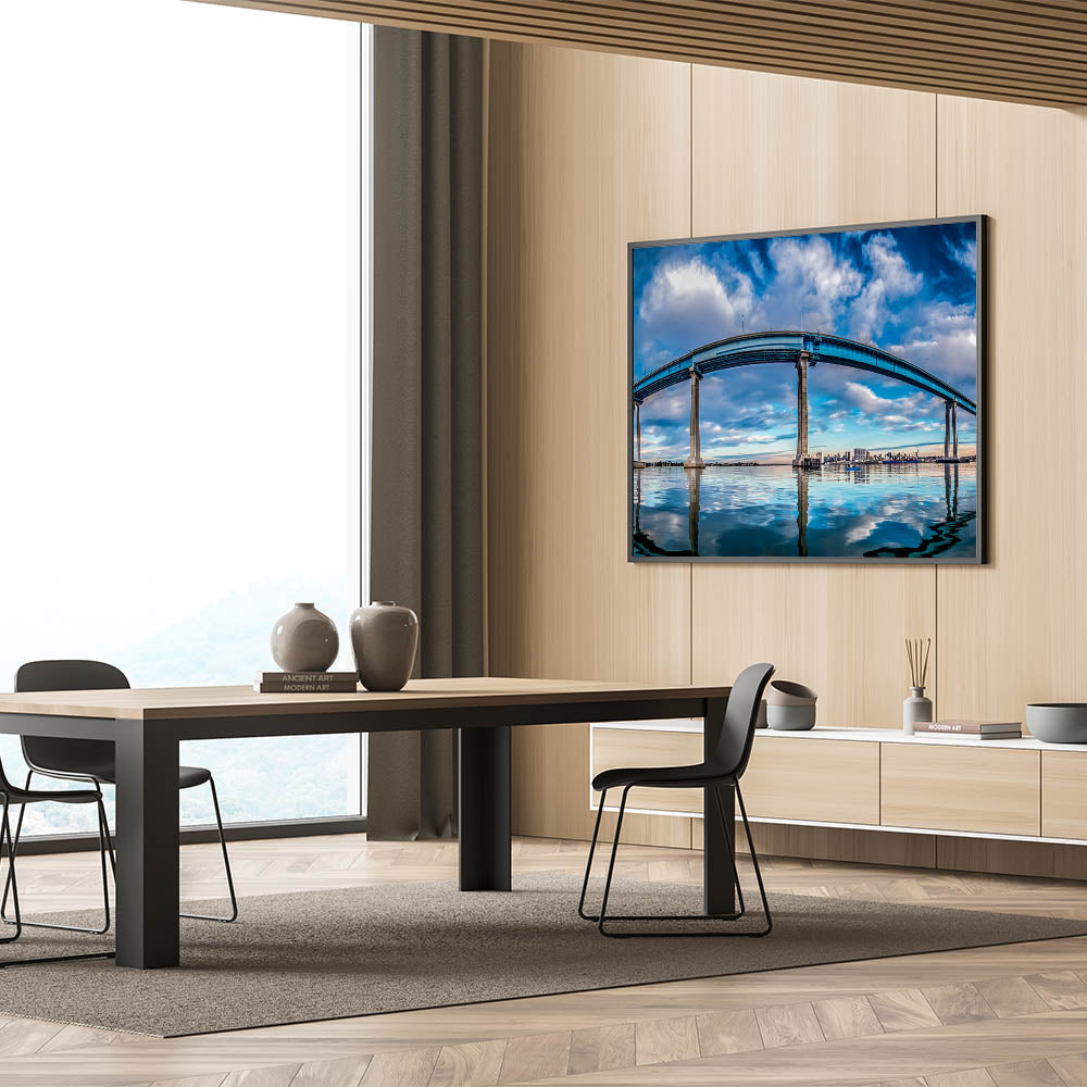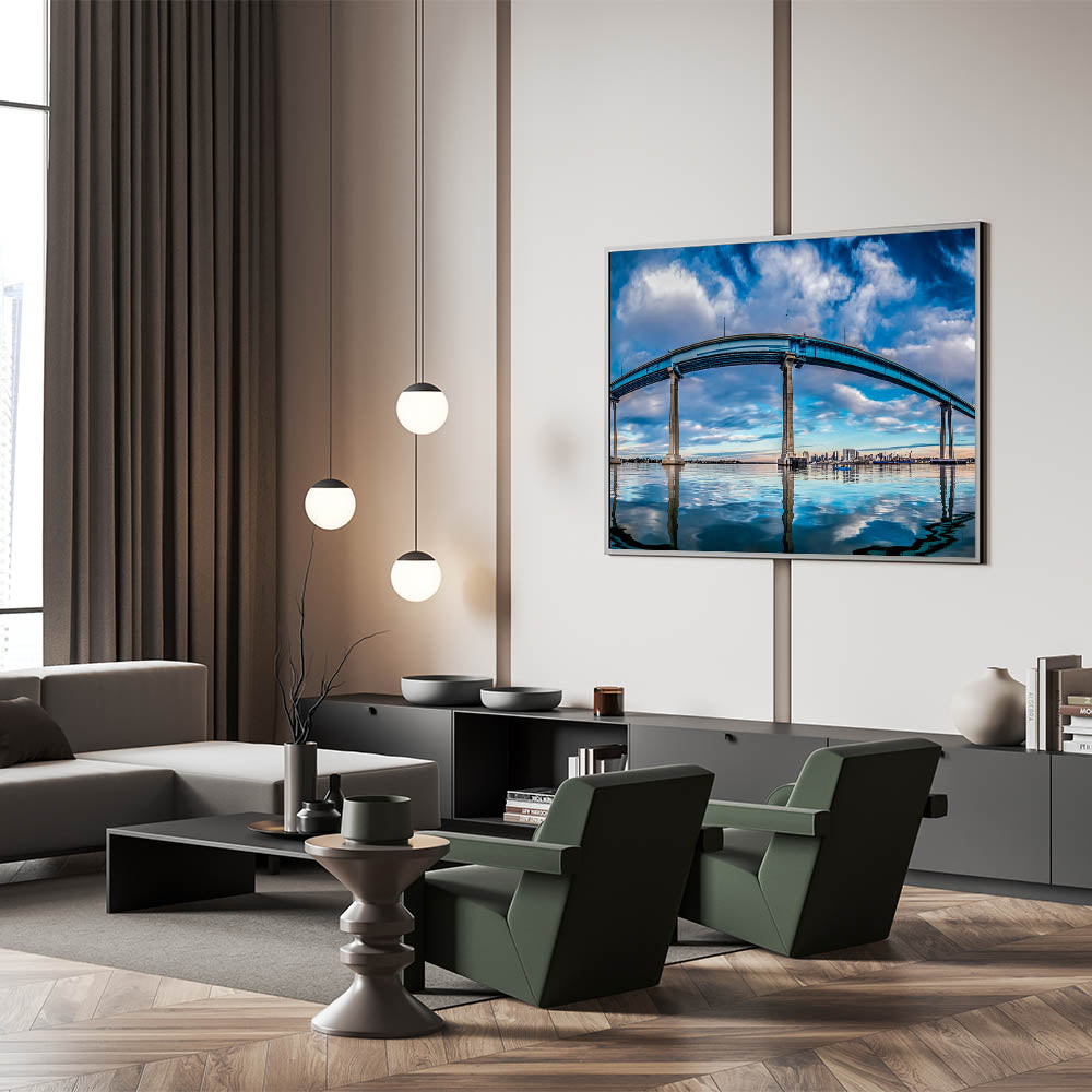 Add a touch of San Diego’s coastal majesty to your decor with this stunning view of the Coronado Bridge. The expansive composition and serene reflections make it a captivating centerpiece for any room.