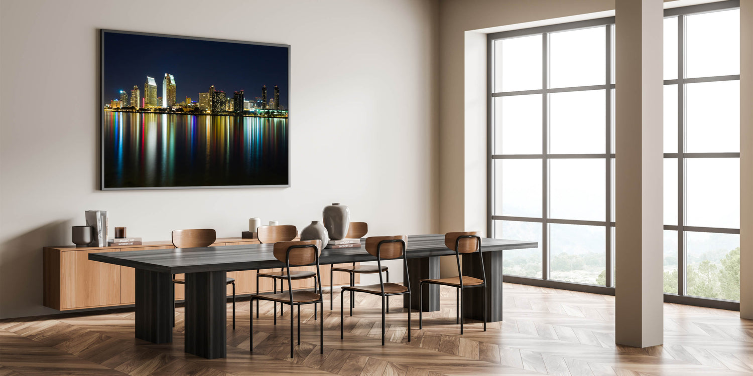 Add a piece of San Diego’s iconic nightscape to your space and enjoy the captivating reflection of city lights on your walls. This artwork brings a blend of modern style and urban charm, perfect for anyone looking to celebrate California’s beauty.