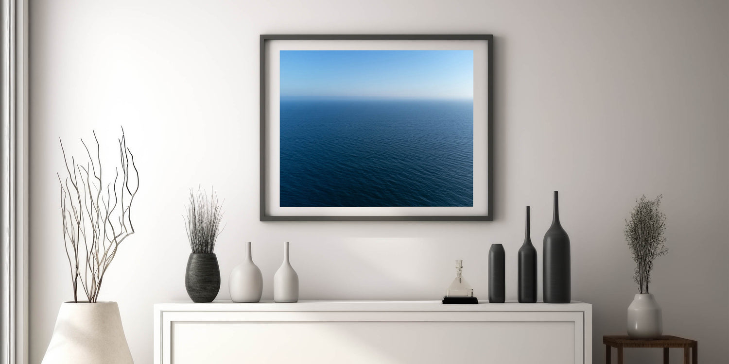 Immerse yourself in the tranquility of the Pacific with this stunning ocean horizon artwork from Santa Monica. The calm, endless expanse of water meets the serene blue sky, creating a soothing and peaceful atmosphere that evokes a sense of calm and reflection. This minimalist yet captivating piece is perfect for bringing a touch of coastal serenity to your home or office, offering a moment of escape with its endless horizon.