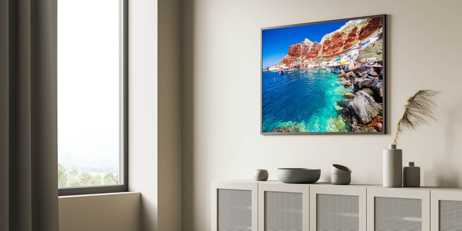 - Brings a touch of the Aegean Sea wall art to your decor with its striking coastal view.