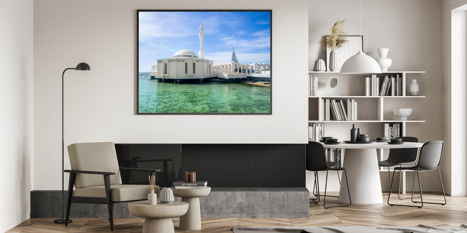 Capture the breathtaking beauty of the Middle East with this exclusive Saudi Arabia Wall Art. This stunning piece features the iconic Floating Mosque in Jeddah, set against the clear waters of the Red Sea and the brilliant blue sky. Perfect for those who appreciate the unique charm of Islamic architecture and Saudi Arabian landmarks, this wall art transforms any space with its tranquil yet captivating scenery.