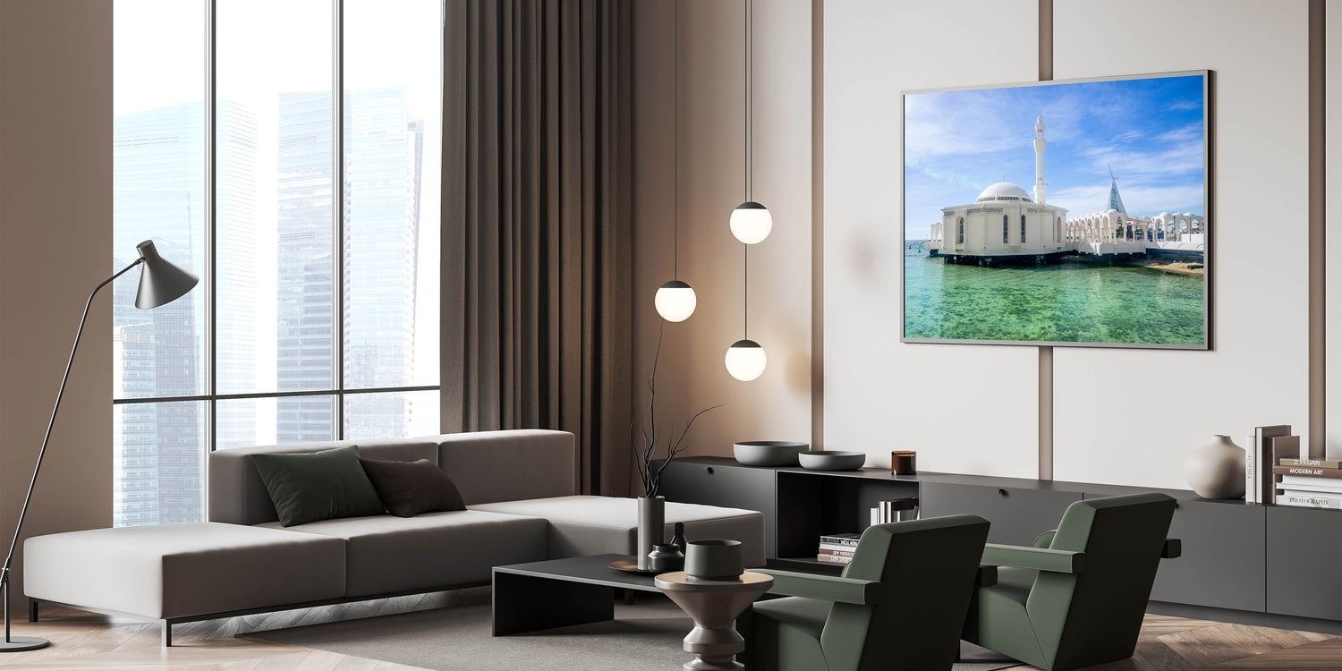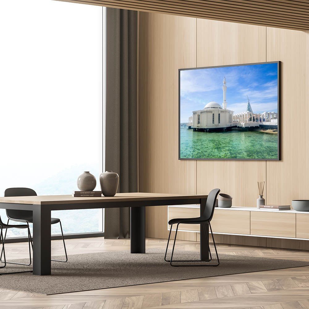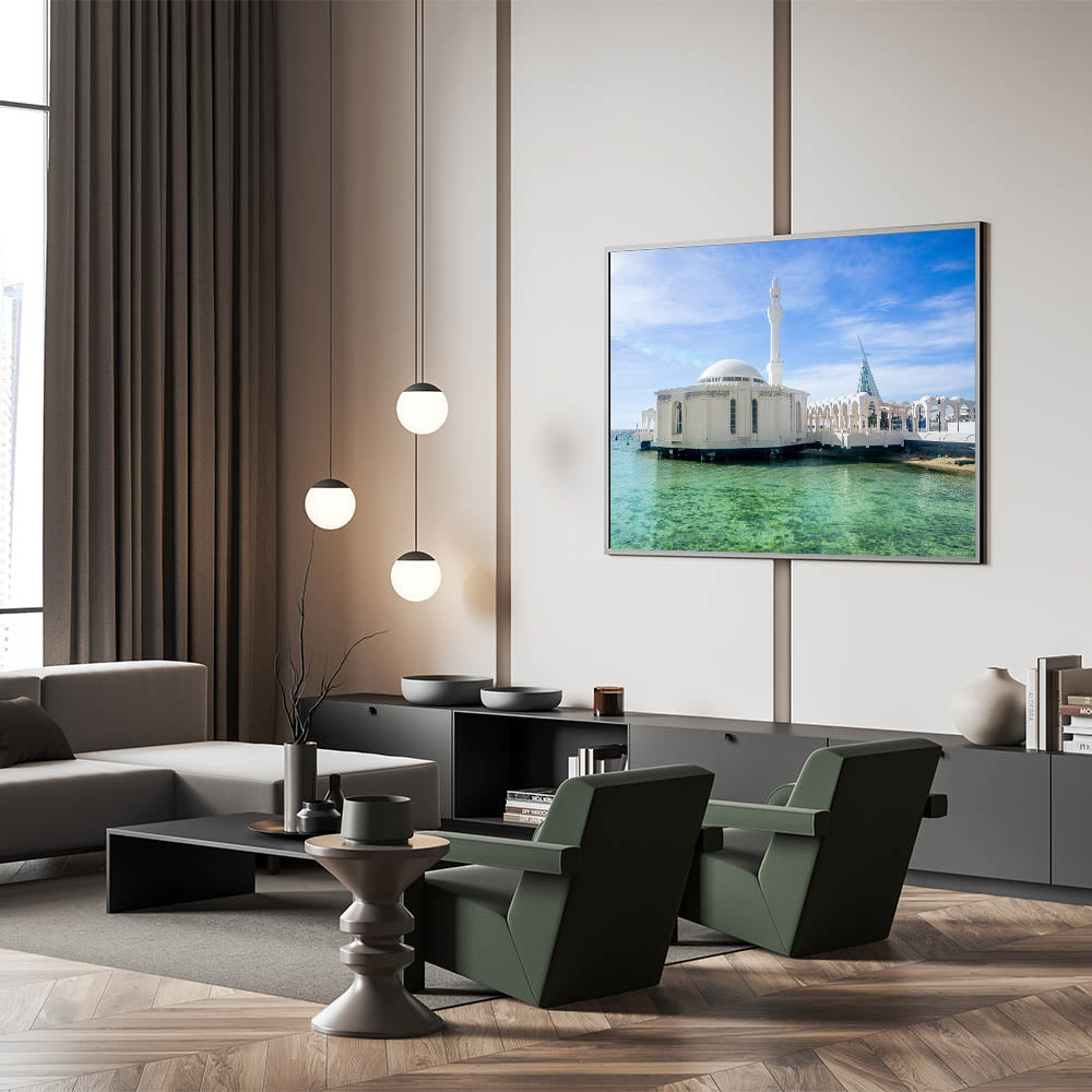 - Handcrafted Saudi Art available in multiple materials, including stretched canvas, framed canvas, and acrylic glass.