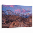 Immerse yourself in the rugged beauty of the Sierra Nevada with this stunning landscape print. Capturing the towering snow-capped peaks against a vibrant sunset sky, this artwork brings the breathtaking wilderness of California right into your home. With rich browns and soft pinks blending together, this piece is ideal for anyone who loves nature and wants to add a touch of the outdoors to their decor.
