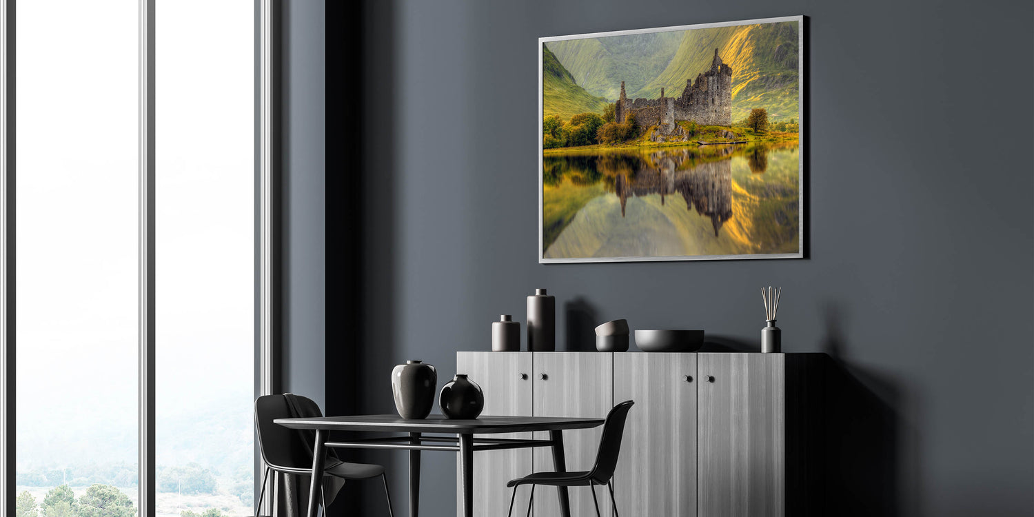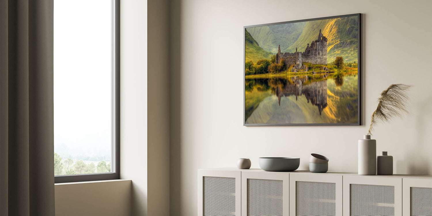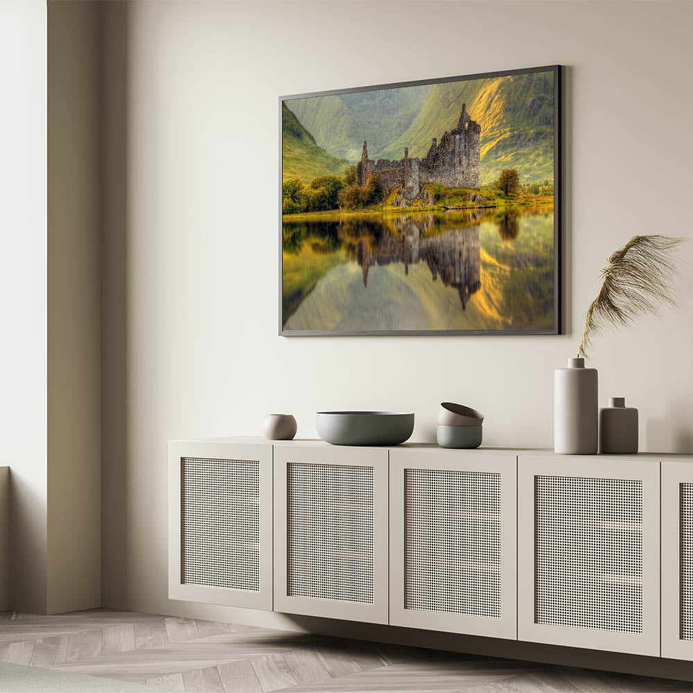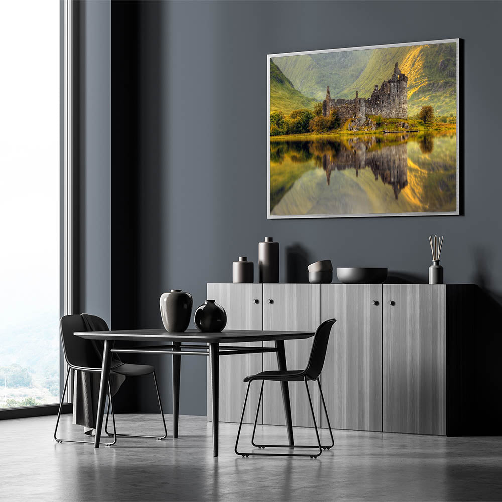 Ideal for history buffs or nature lovers, this stunning reflection of Kilchurn Castle offers a peaceful focal point for any decor. Let the Captivating Scotland Scenery of this artwork transport you to the heart of the Highlands, where nature and history collide.