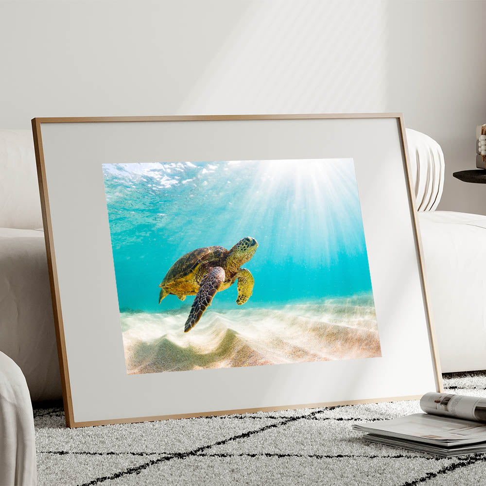 Bring the serene beauty of the ocean into your home with this stunning turtle wall art. Featuring a majestic sea turtle gliding through crystal-clear waters, this piece captures the essence of marine life and adds a touch of tropical elegance to any space. Perfect for ocean enthusiasts and art lovers alike, this artwork is available in various formats to suit your decor needs.