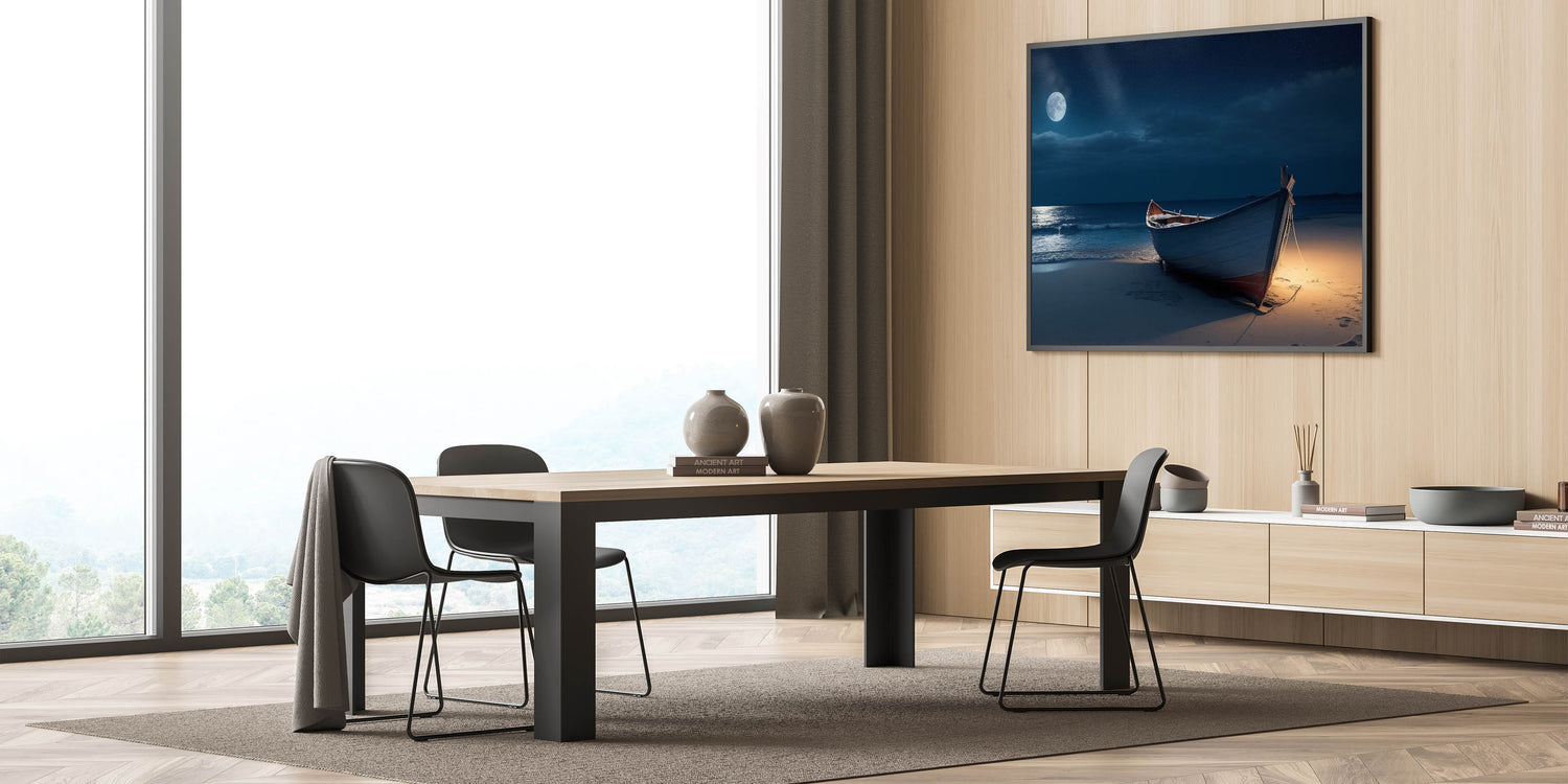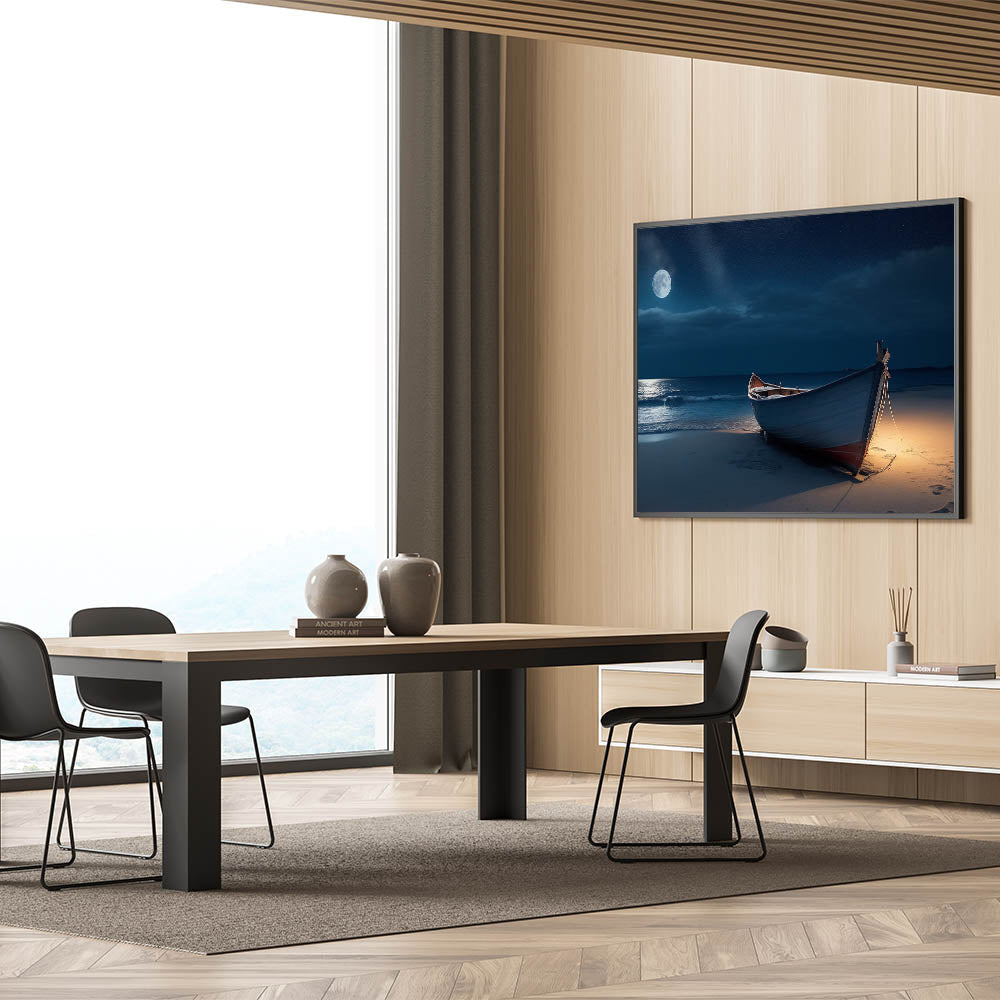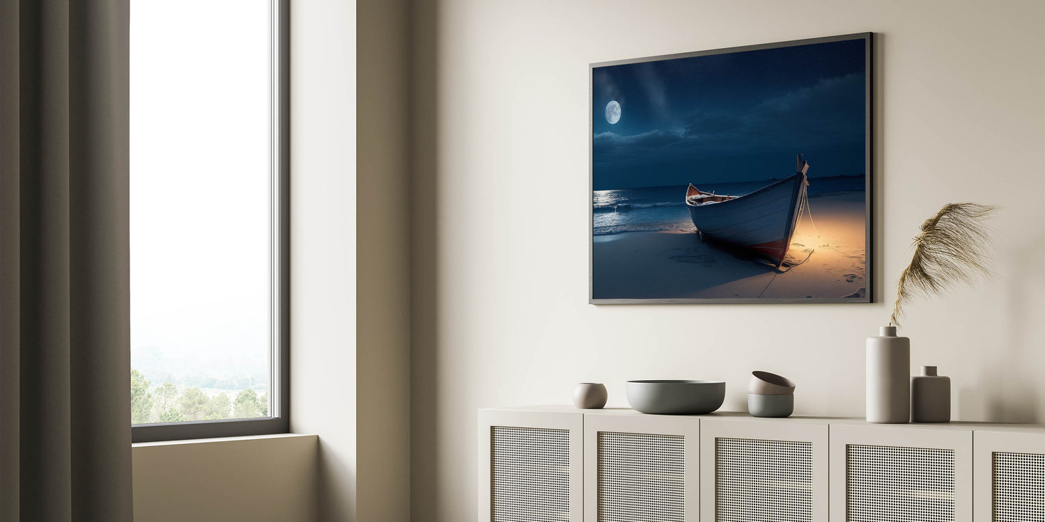 Add this moonlit boat on beach canvas to your decor, and let the peaceful vibes of a quiet night by the ocean bring relaxation and serenity into your space. Order now to enjoy the calm of the coast every night.