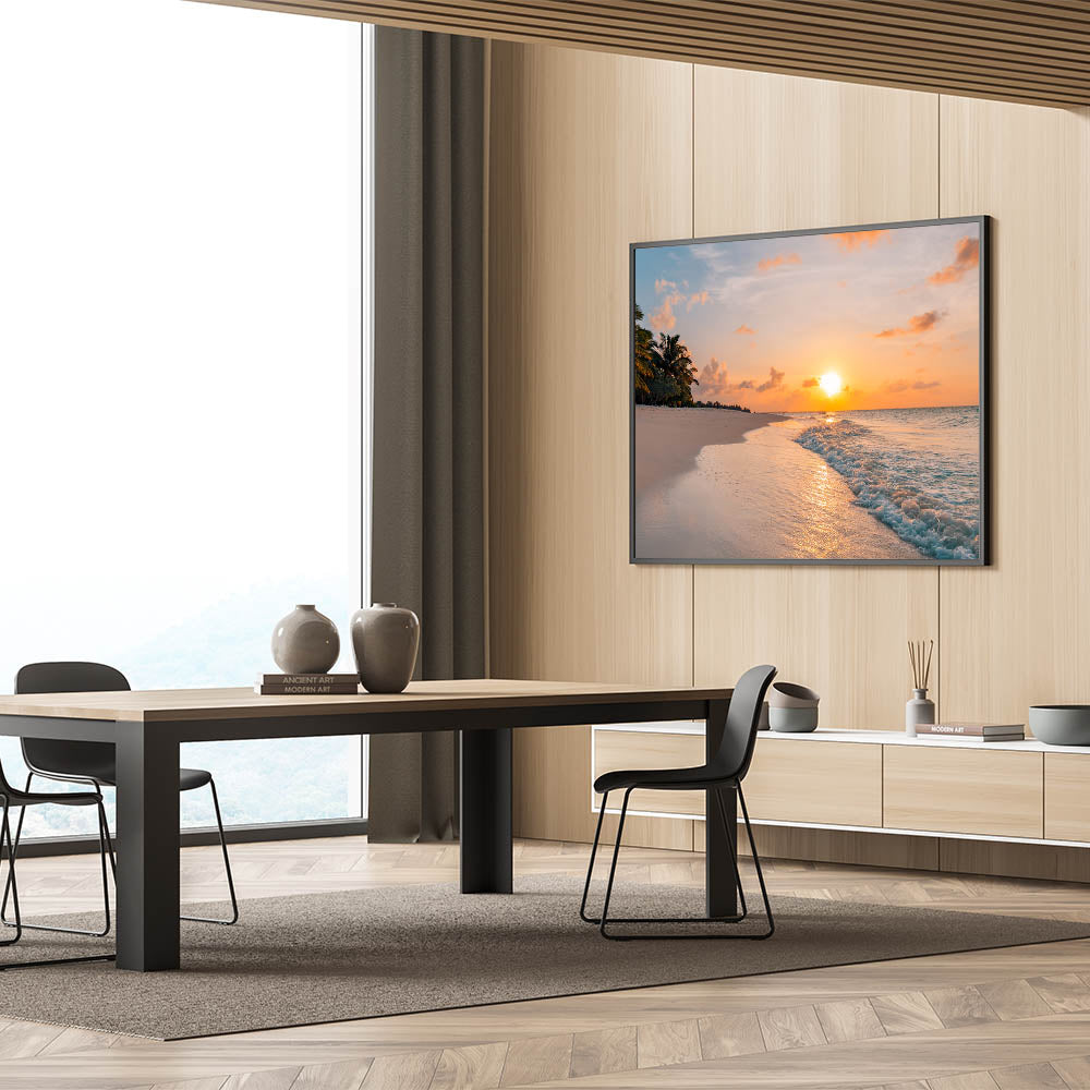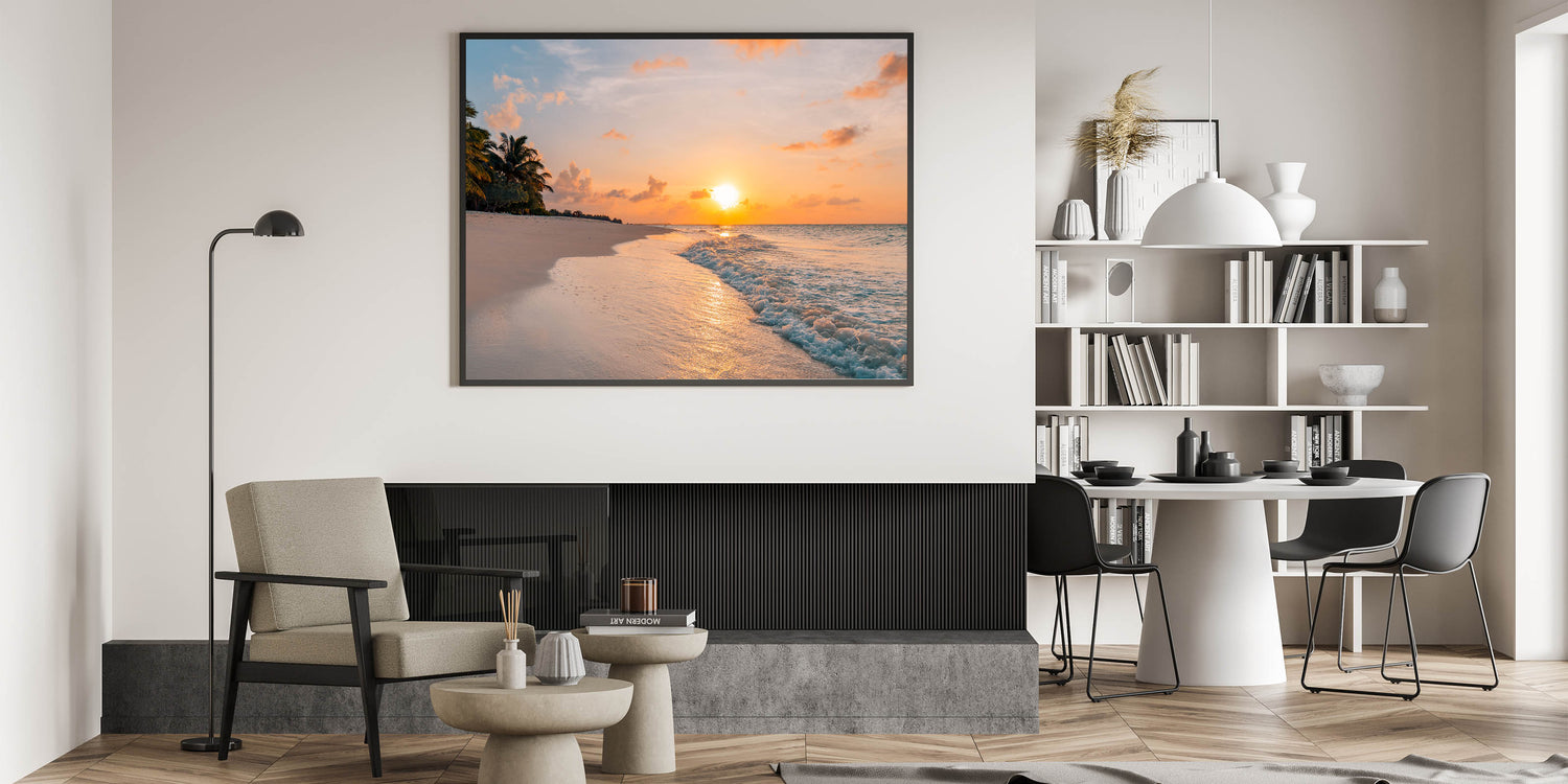 - High-Quality Print: Expertly printed to ensure the vibrant sunrise and tranquil beach scene are displayed with stunning clarity and color.