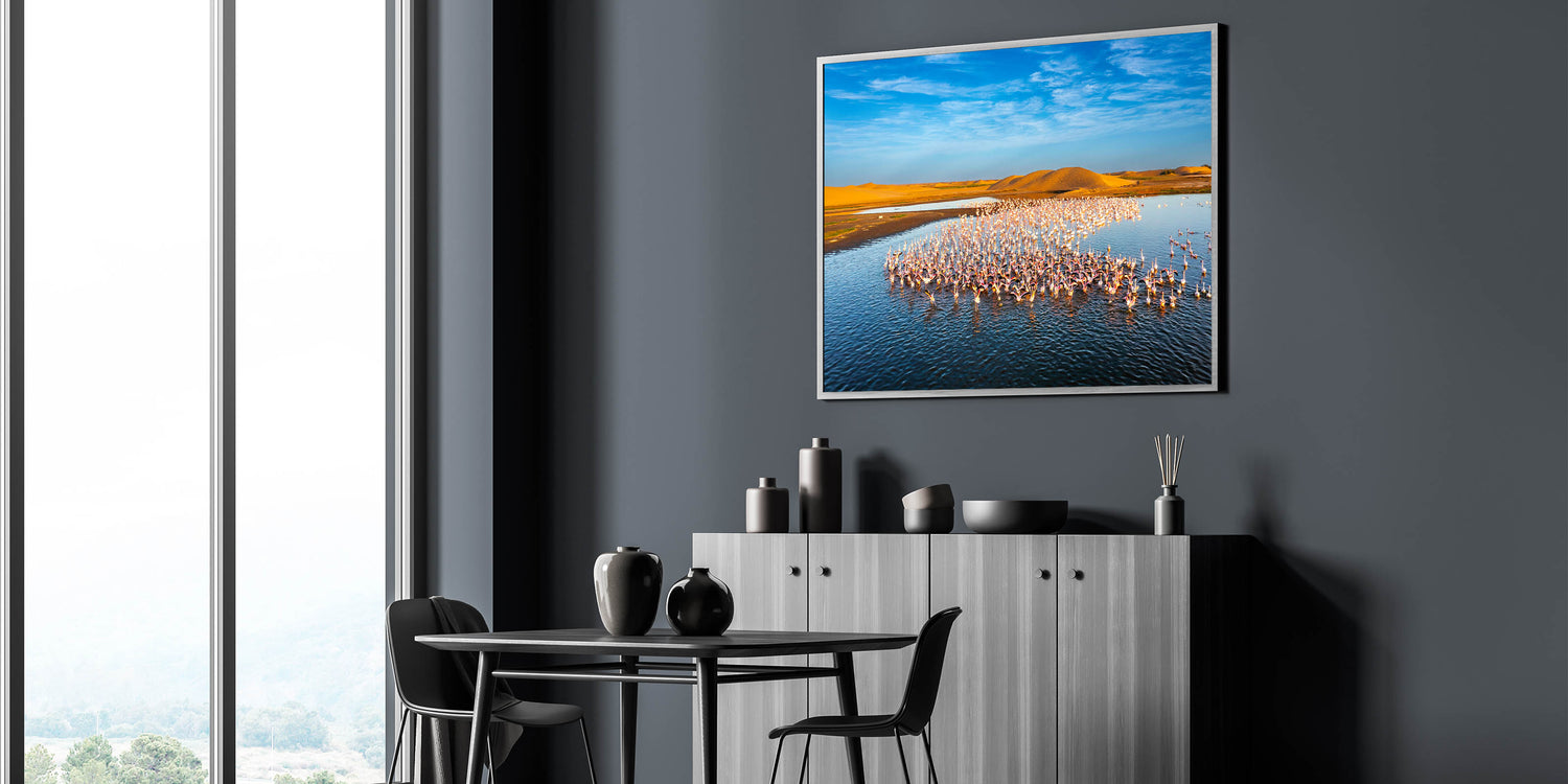 - High-Quality Print: Expertly crafted to highlight the vivid colors and intricate details of the flamingos and their desert oasis habitat, ensuring a striking visual impact.