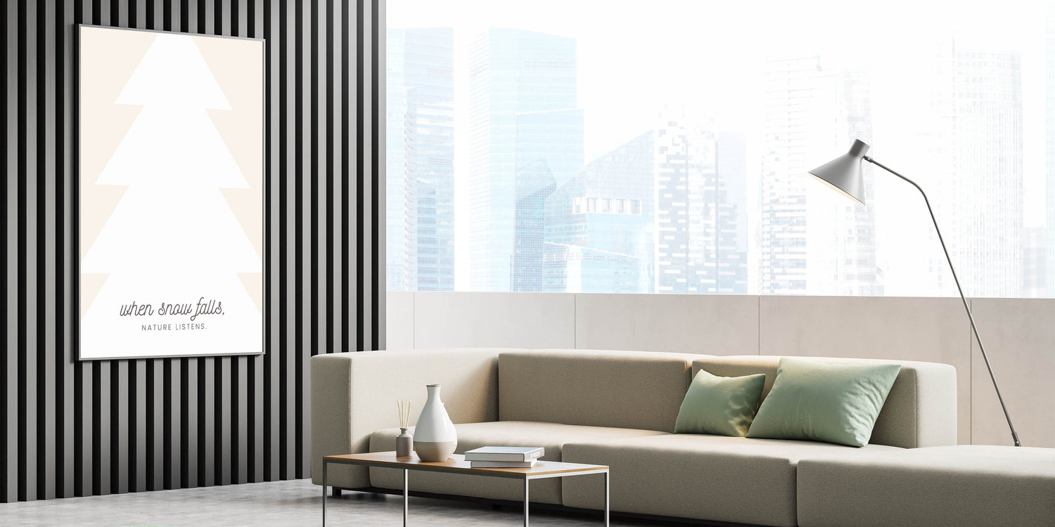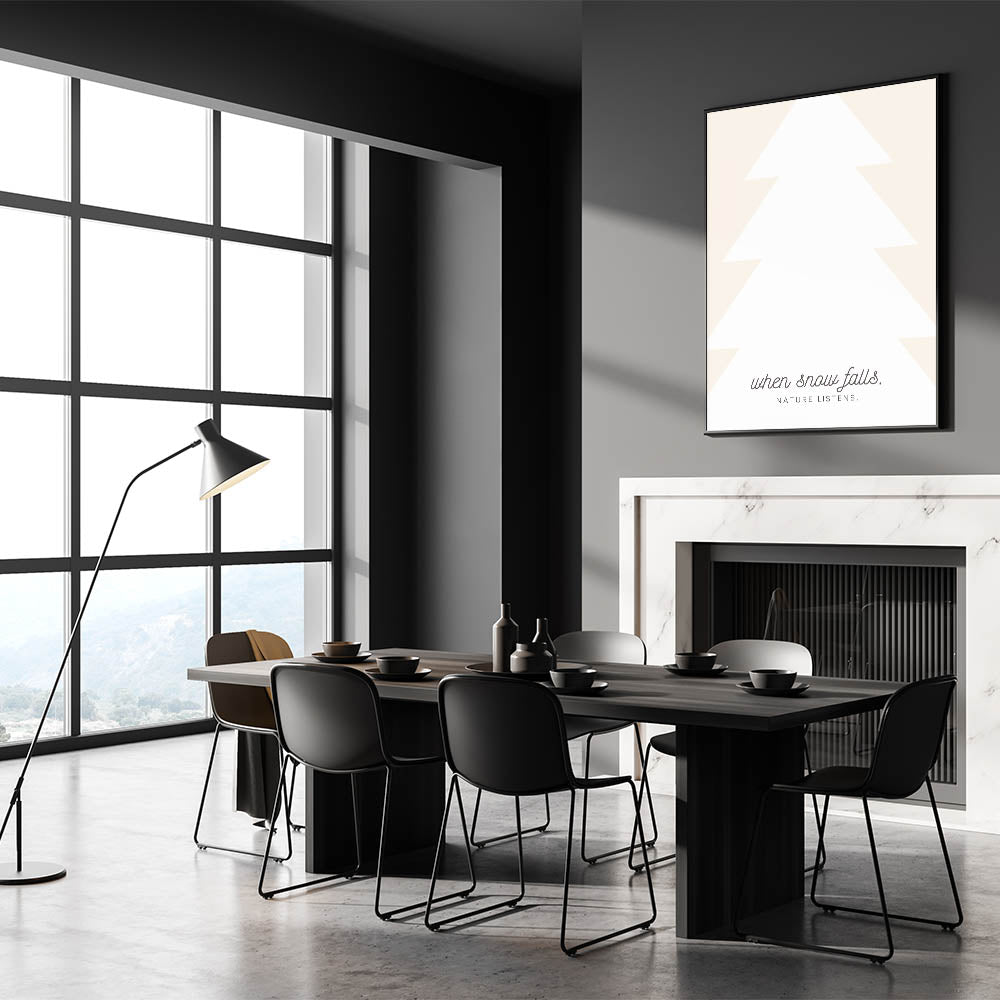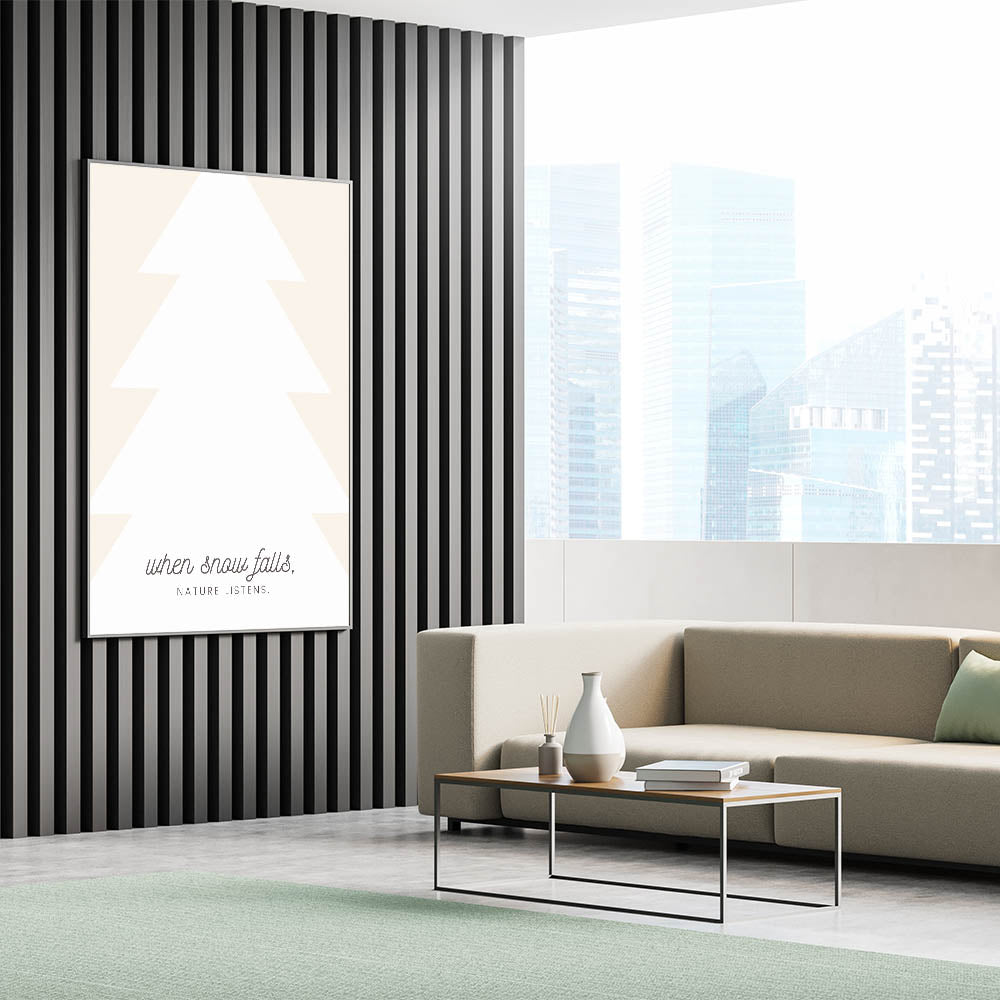 Embrace the quiet beauty of winter with this Minimalist Winter Quote Wall Art. Featuring a modern, abstract tree silhouette paired with the poetic phrase, "When snow falls, nature listens," this design captures the peaceful and reflective essence of the season. With soft neutral tones and elegant typography, this Winter Canvas Art blends effortlessly with contemporary and Scandinavian-inspired interiors.