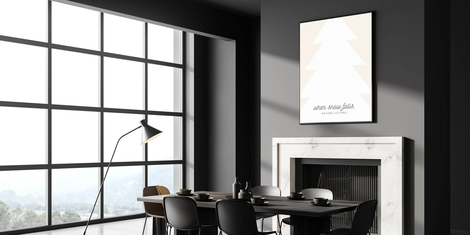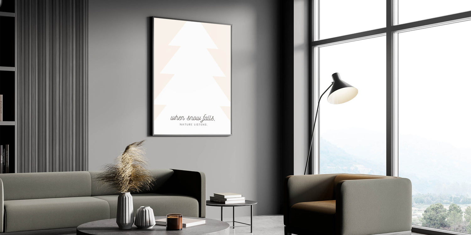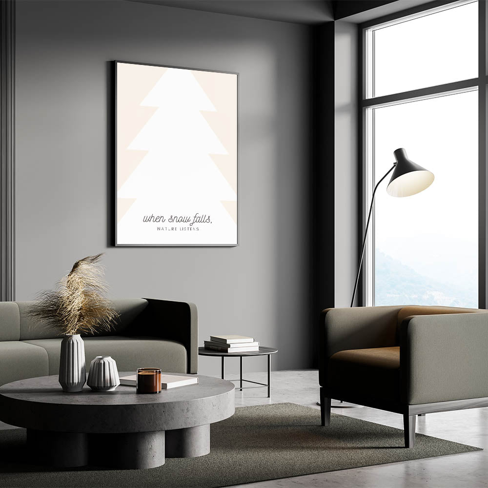 Embrace the quiet beauty of winter with this Minimalist Winter Quote Wall Art. Featuring a modern, abstract tree silhouette paired with the poetic phrase, "When snow falls, nature listens," this design captures the peaceful and reflective essence of the season. With soft neutral tones and elegant typography, this Winter Canvas Art blends effortlessly with contemporary and Scandinavian-inspired interiors.