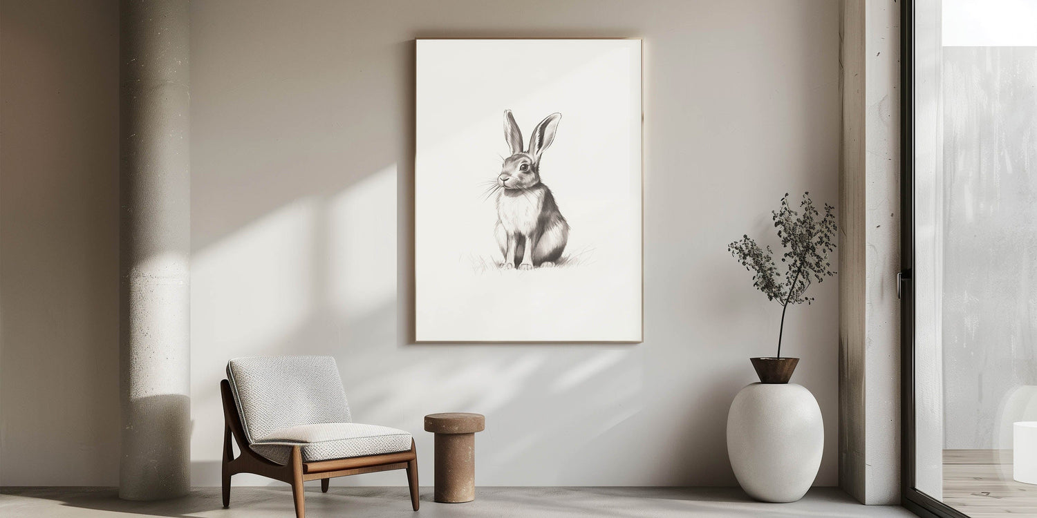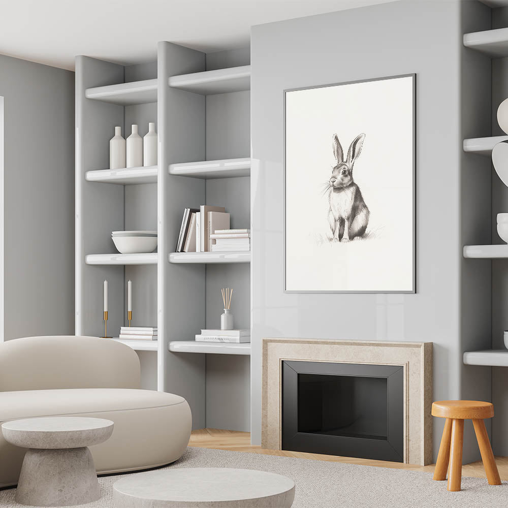 Embrace the beauty of simplicity with this Winter Wall Art, featuring a delicate black-and-white sketch of a rabbit. This Winter Canvas Art captures the elegance of minimalism, making it a perfect choice for modern and rustic interiors. The clean lines and soft shading of the design highlight the charm of Winter Scene Wall Art, adding a touch of warmth and sophistication to your space.