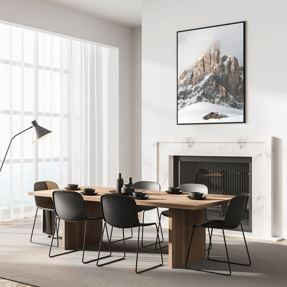 This Snowy Landscape Wall Art is perfect for those who appreciate the peaceful solitude of mountain life. Whether displayed in a living room, bedroom, or office, this Winter Wonderland Wall Art invites a sense of adventure and tranquility into any space.