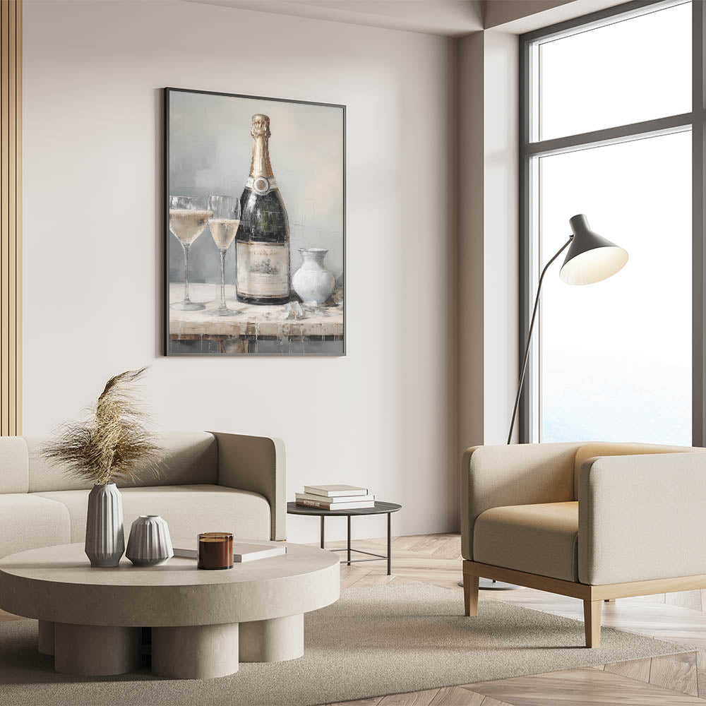 Winter Wall Decor – Elegant Champagne Still Life Canvas Print