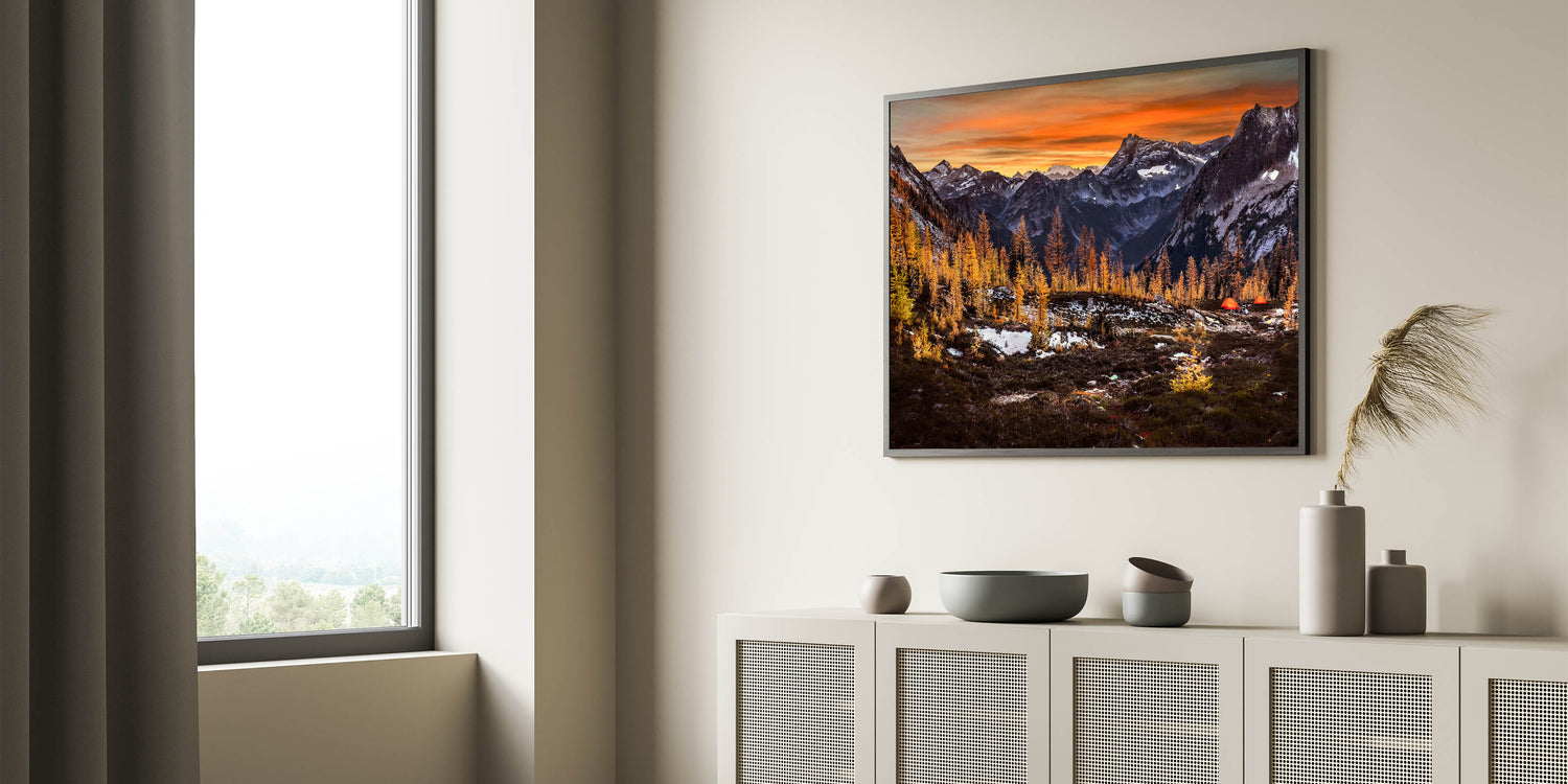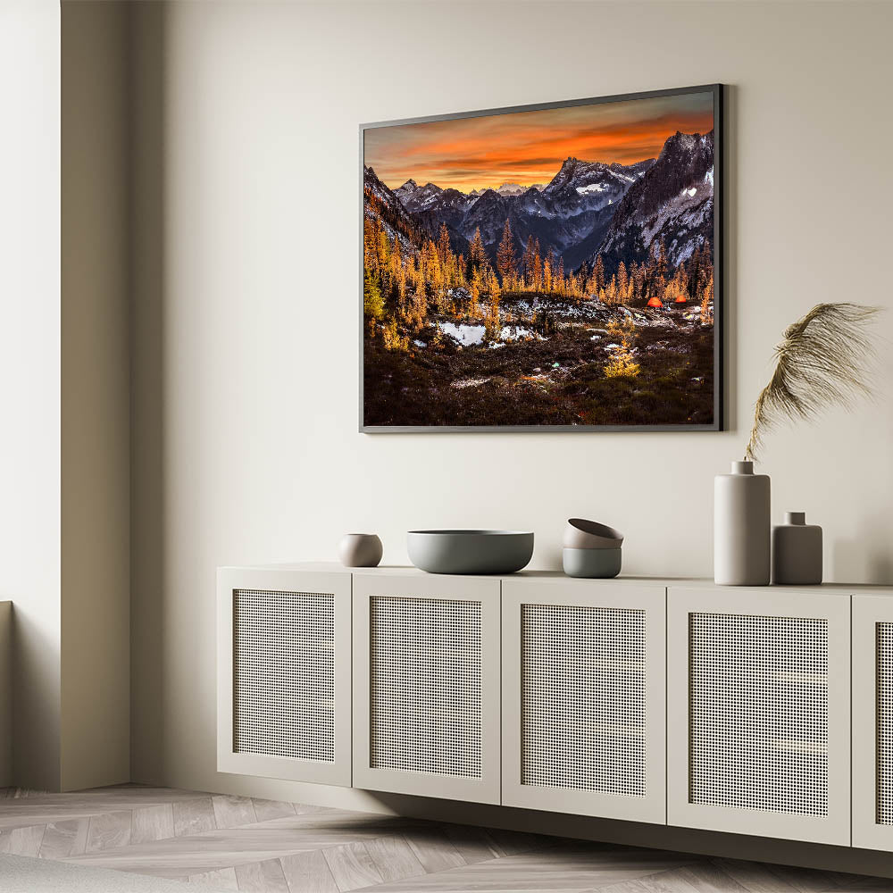 • Available in multiple formats: rolled canvas, framed prints, and acrylic