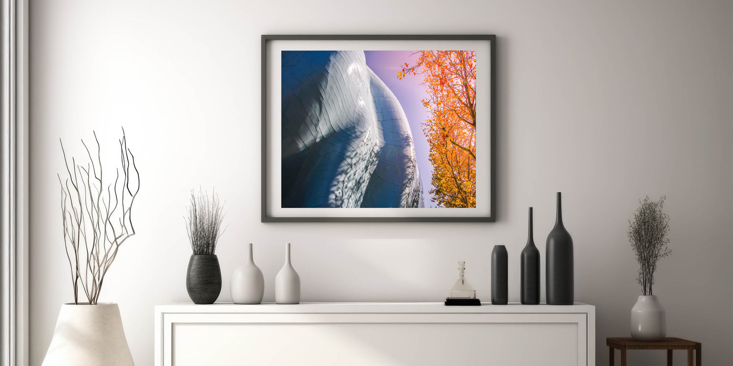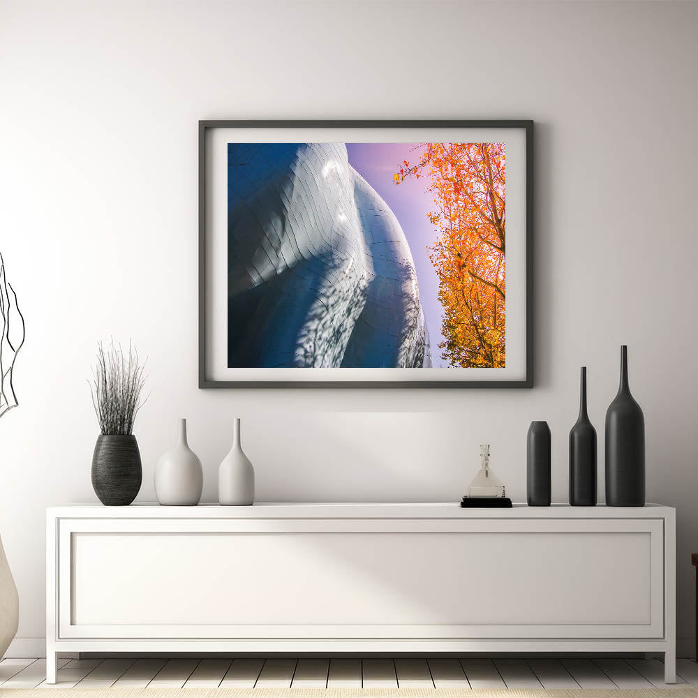This beautiful Seattle artwork is ideal for creating a captivating focal point in any room, from modern apartments to traditional homes. The architectural curves combined with the warm tones of autumn make it a perfect piece for anyone who loves both artistic Seattle cityscapes and seasonal beauty.