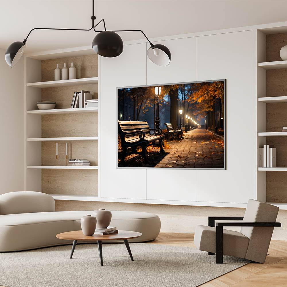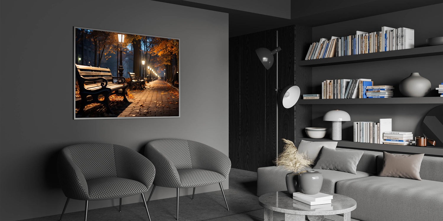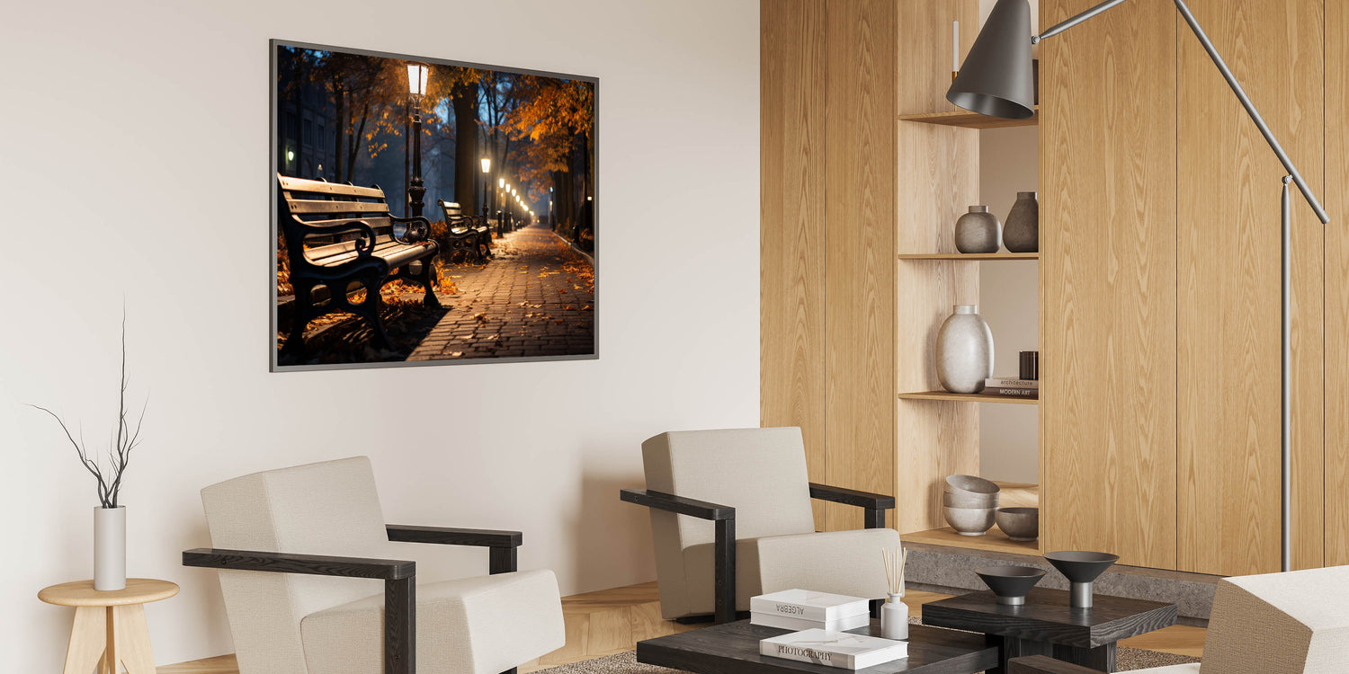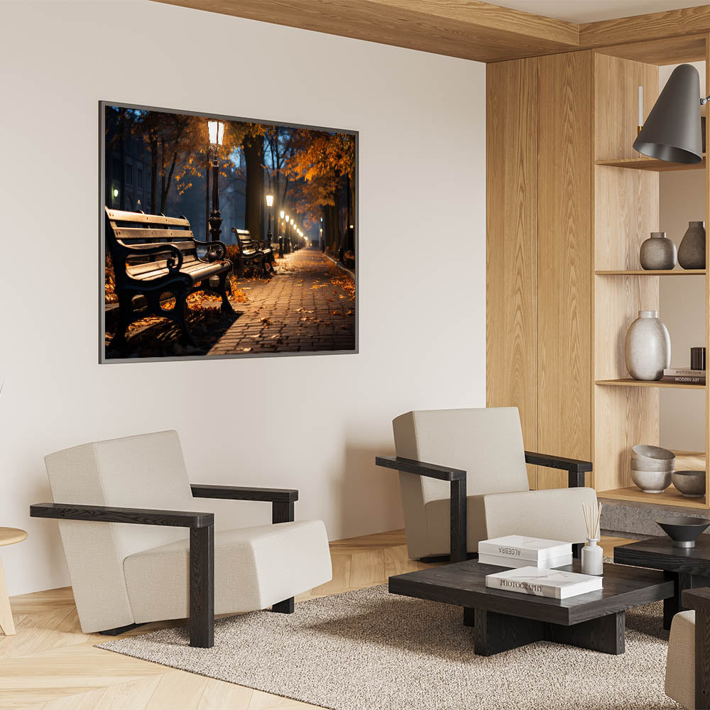 Bring the tranquility of a quiet evening park into your home with this evocative piece, ideal for adding a touch of serenity to your space.