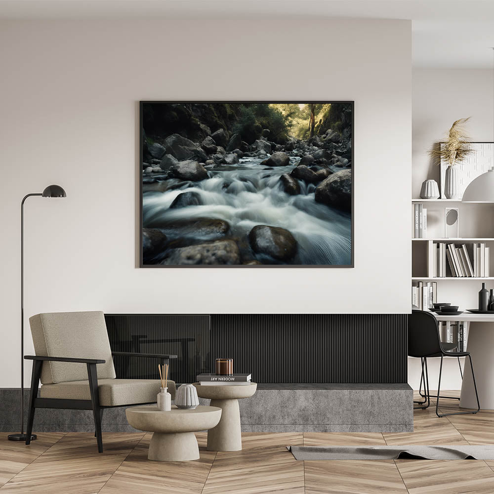 Flowing River Over Rocks – Tranquil Nature Rocks Landscape Wall Art