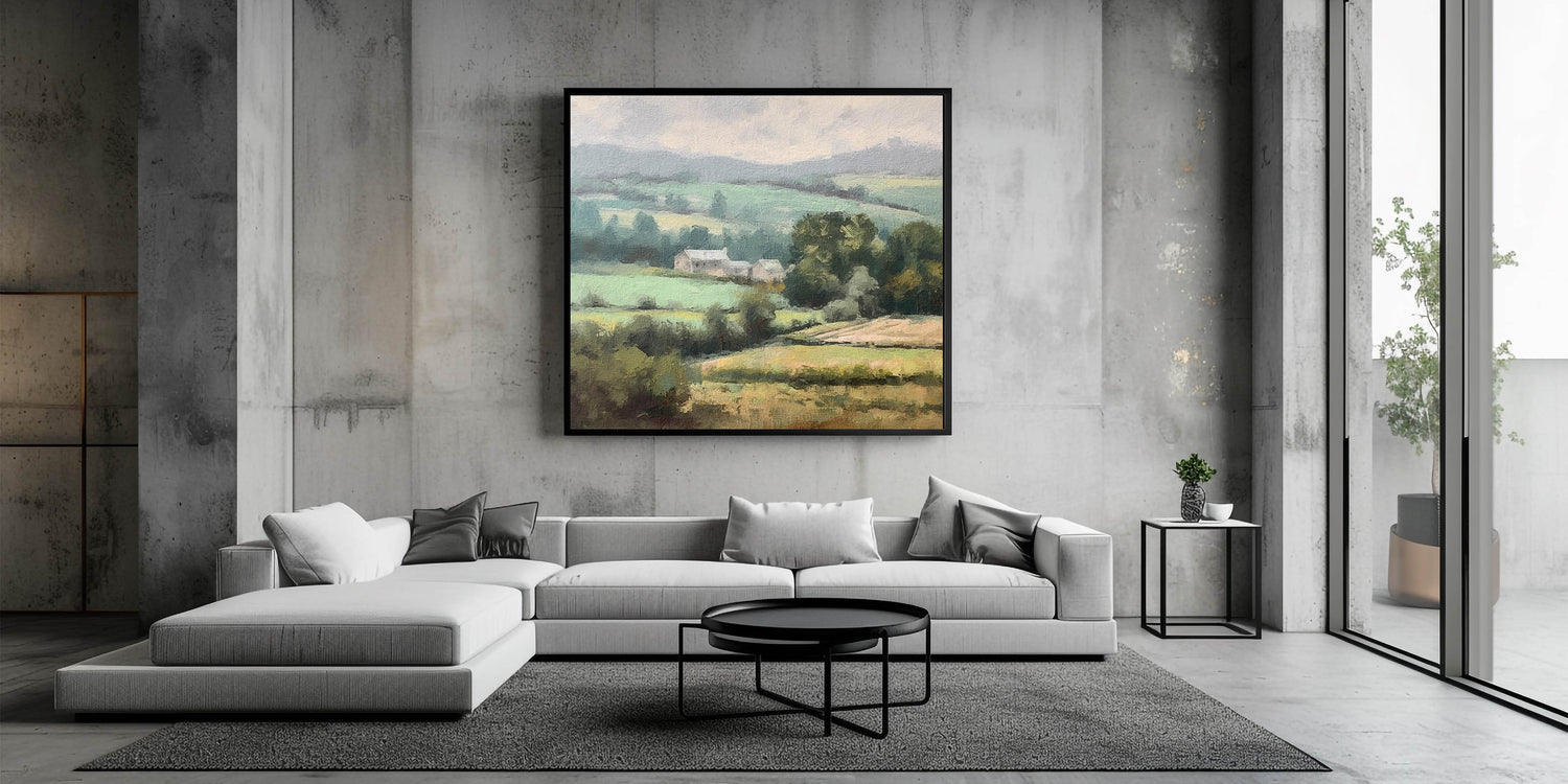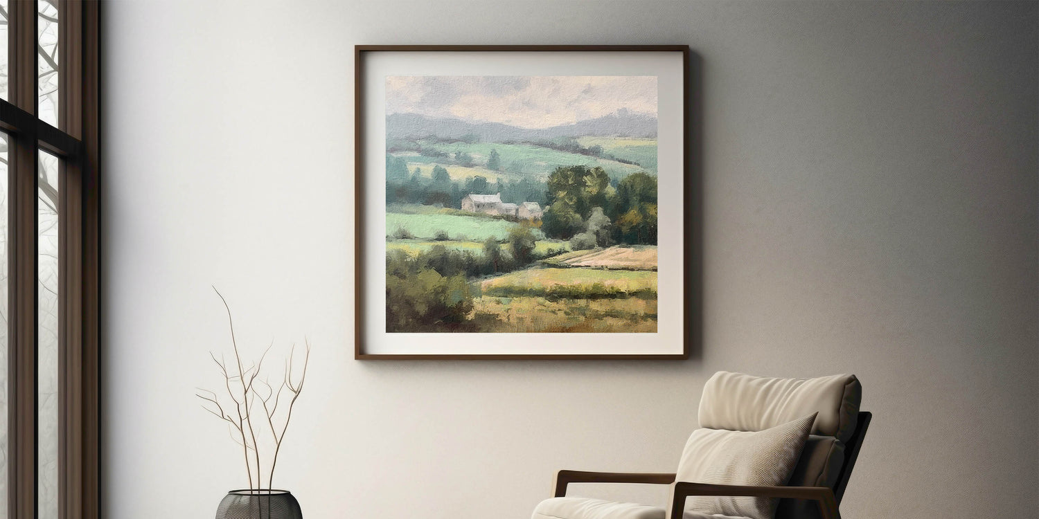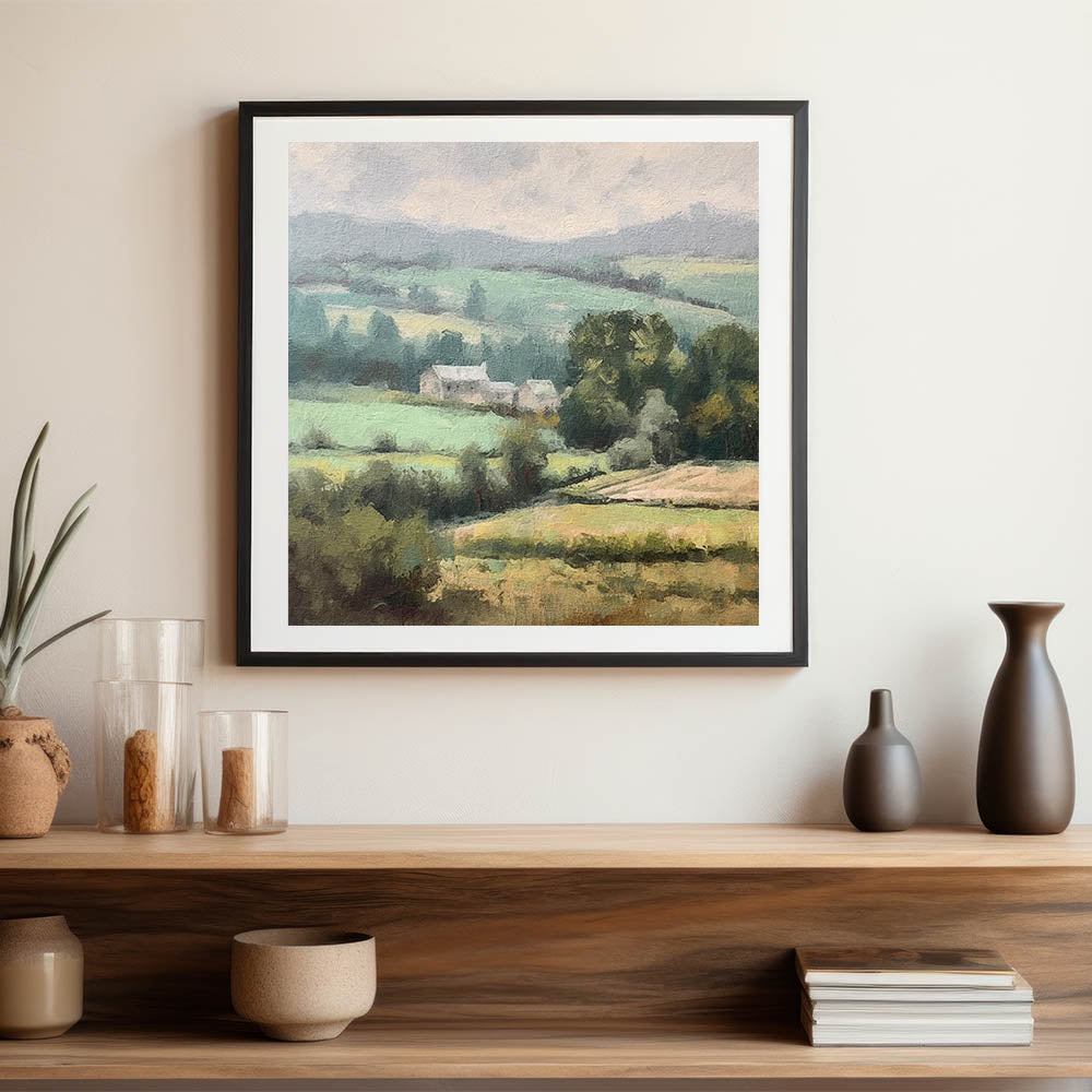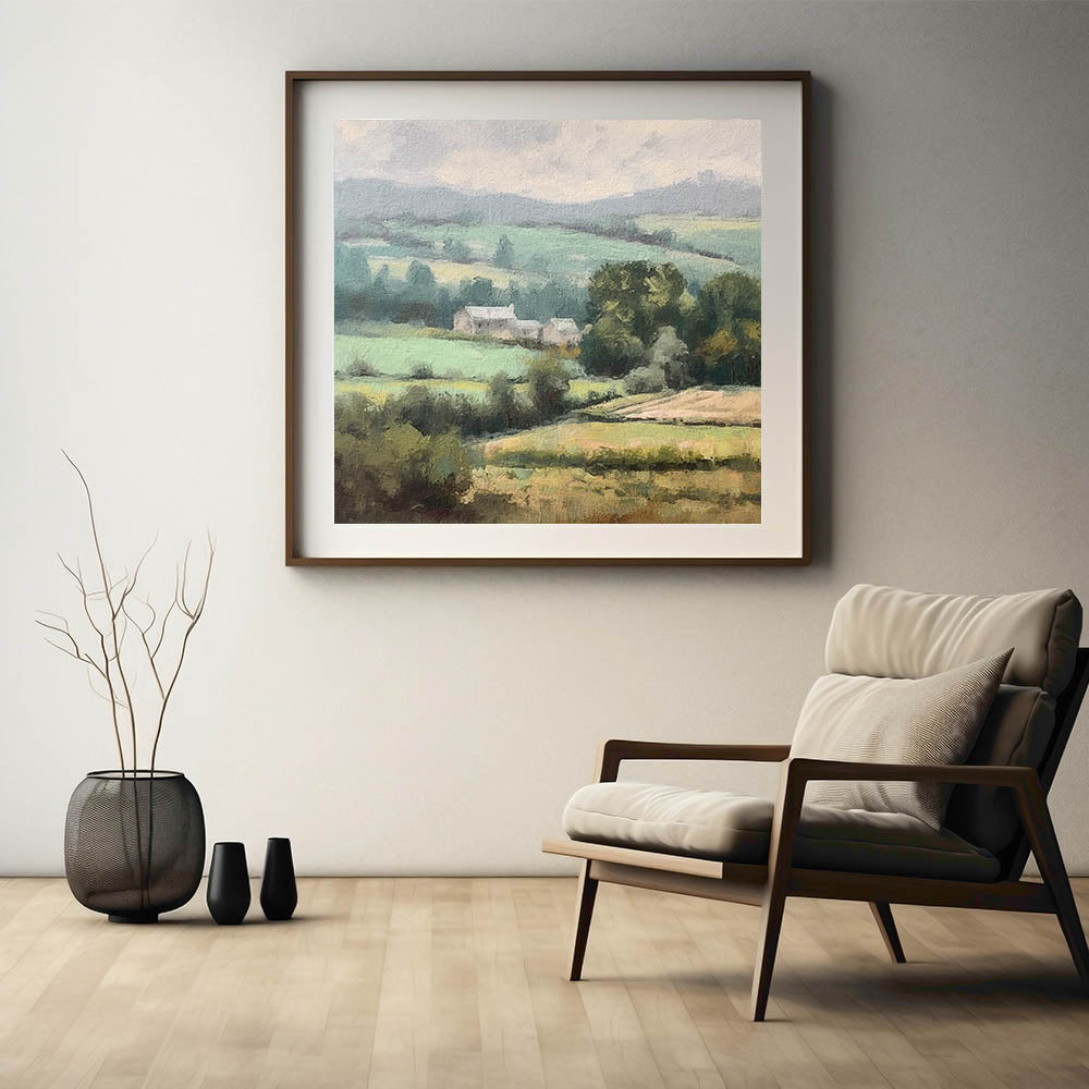 Ideal for bedrooms, living rooms, or study spaces, this artwork brings the serene beauty of rural landscapes indoors. Its gentle tones and expansive view make it an inviting addition to any room in need of a peaceful atmosphere.