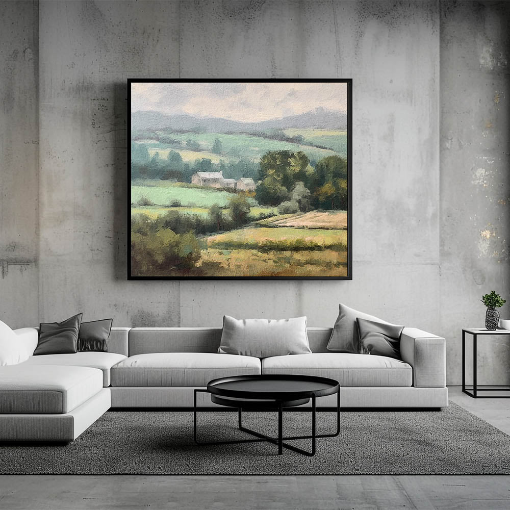 Add a touch of rural charm to your home with this tranquil wall art of rolling green hills and a distant farmhouse. This piece captures the essence of peaceful countryside living, where expansive landscapes and soft colors bring a sense of calm and simplicity. Perfect for rustic or farmhouse-inspired decor, this artwork enhances any space with its natural beauty.