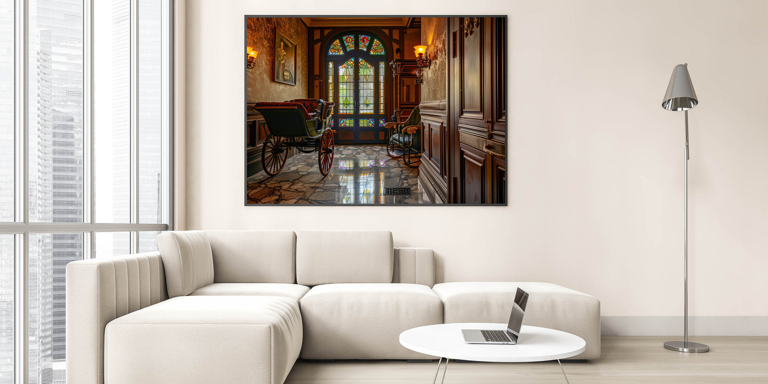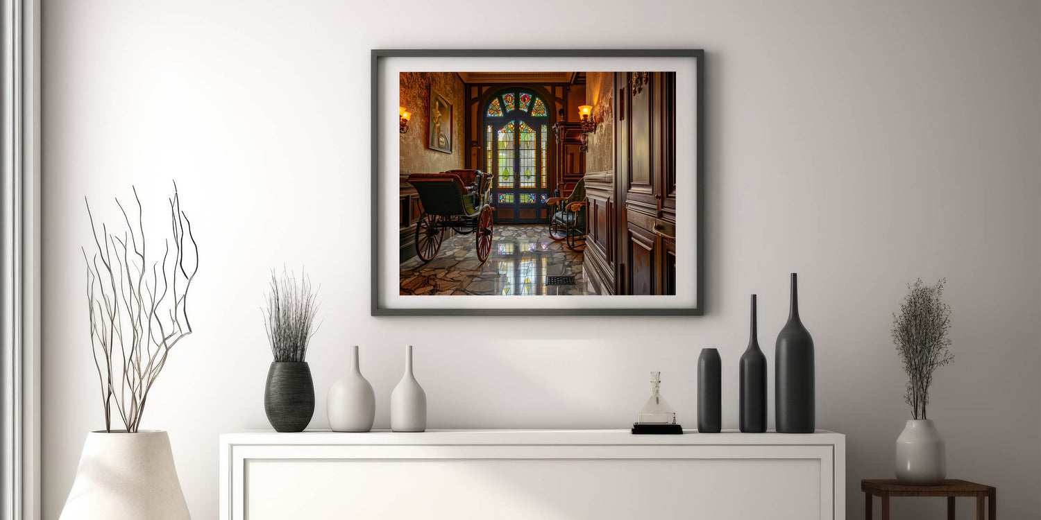 Enhance your living space with this high-quality service vehicles art featuring an elegantly displayed vintage carriage in a luxurious, classic interior setting. This exquisite piece perfectly captures the timeless beauty of historic transportation and is ideal for those who appreciate artistic depictions of service vehicles with a touch of sophistication.