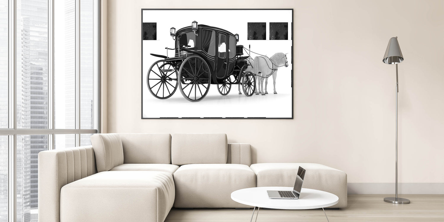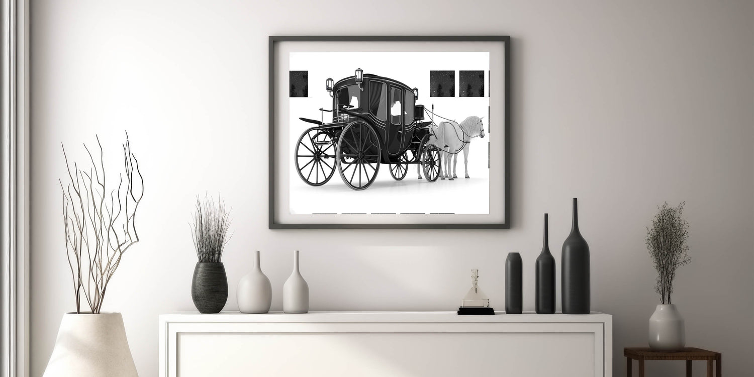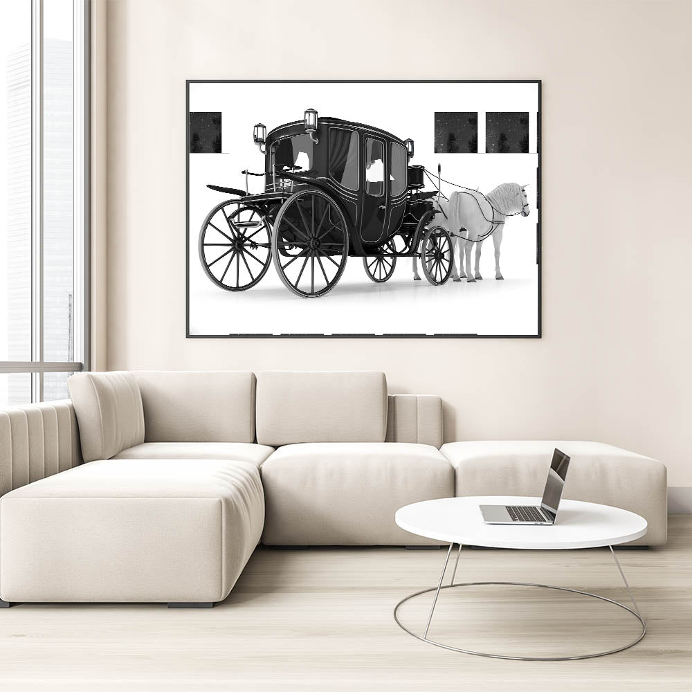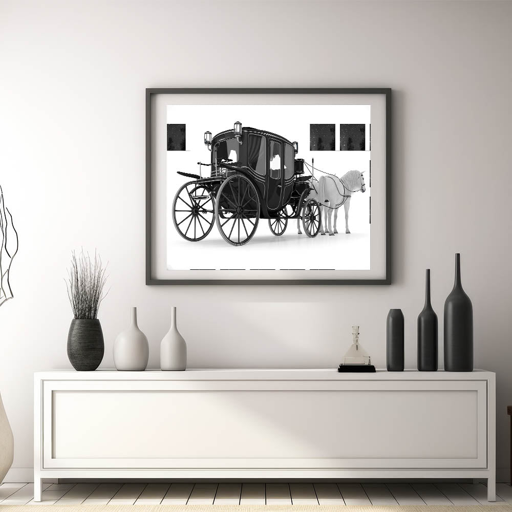Service Vehicles Wall Art - Elegant Horse-Drawn Carriage 3D Render Print