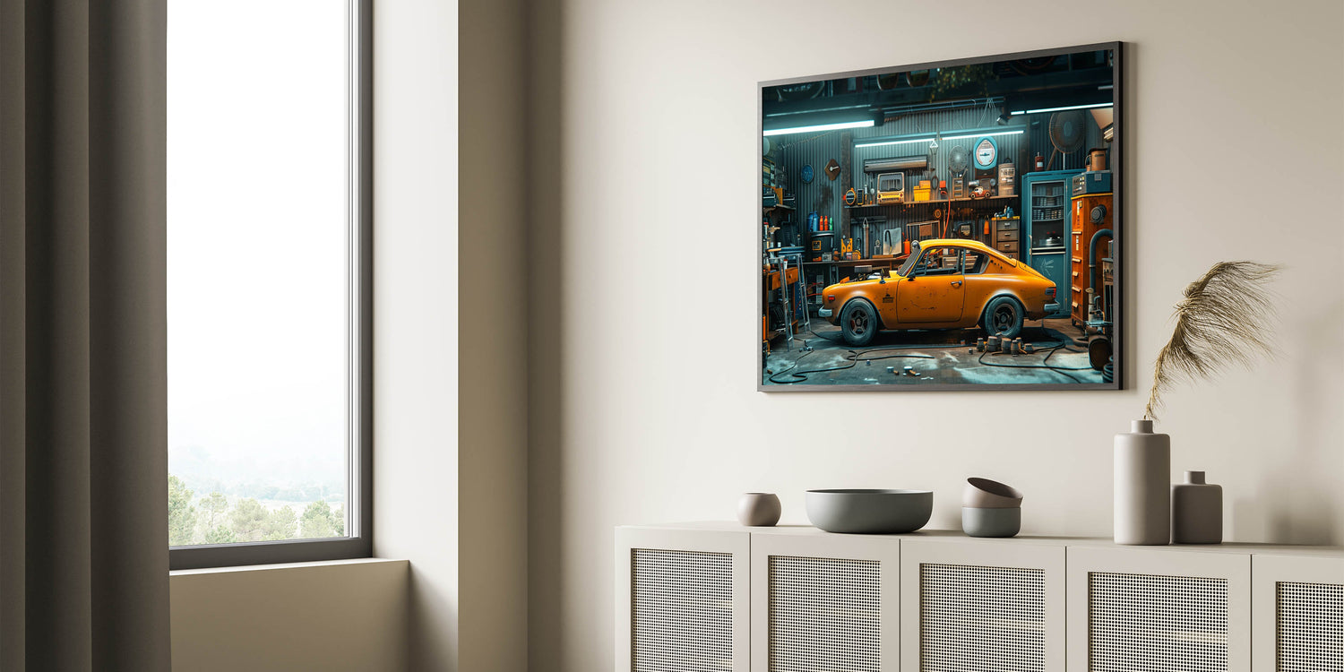 Let this car-inspired art decor bring the charm of a bygone era into your home. Whether you're decorating your garage, office, or living space, this artwork is the perfect way to celebrate the love of vintage cars and retro aesthetics.