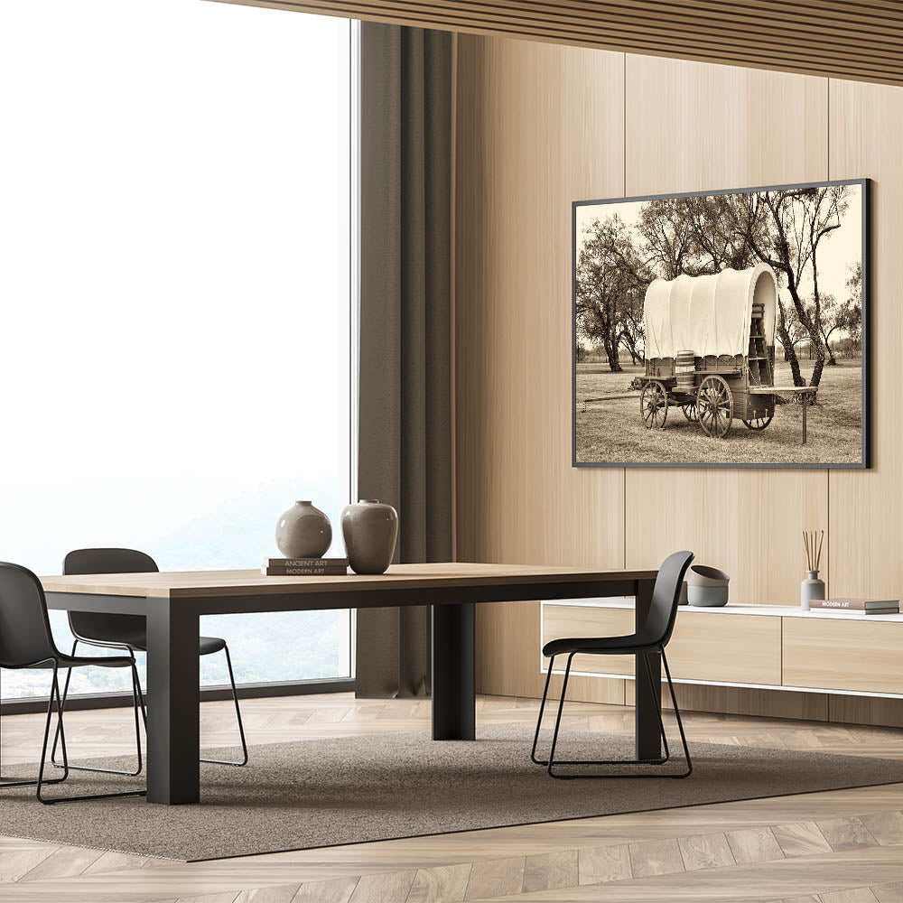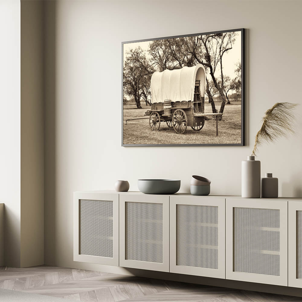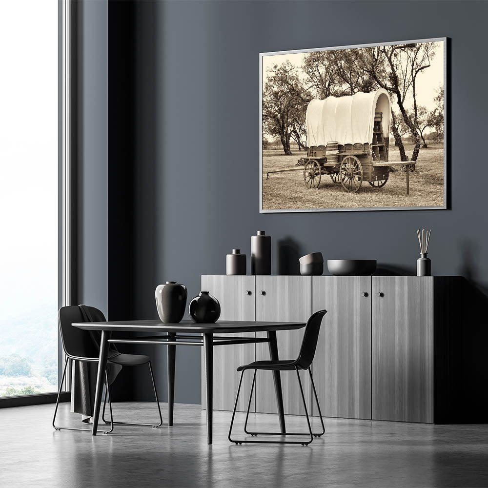 Introduce a touch of history to your space with this captivating vintage service vehicle wall art featuring a meticulously detailed covered wagon. This piece perfectly captures the essence of early service vehicles, making it an ideal addition to any room that appreciates the charm and simplicity of vintage transportation.