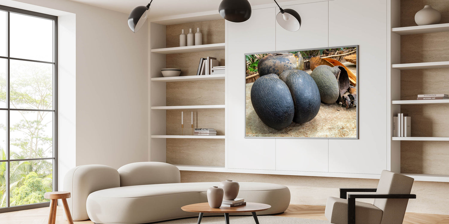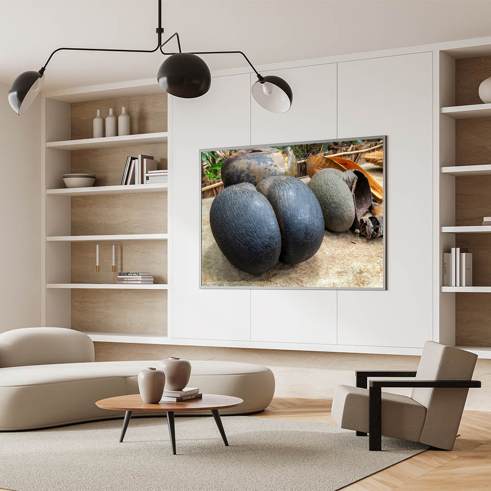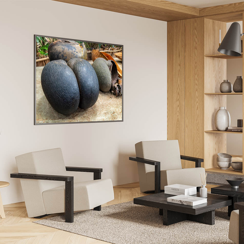 Celebrate the uniqueness of Seychelles with this striking wall art featuring the coco de mer, one of the island's most iconic natural wonders. This exotic coconut, known for its distinctive shape and rarity, is beautifully captured in this detailed photography print, making it a standout piece for nature enthusiasts and those who appreciate rare tropical treasures.
