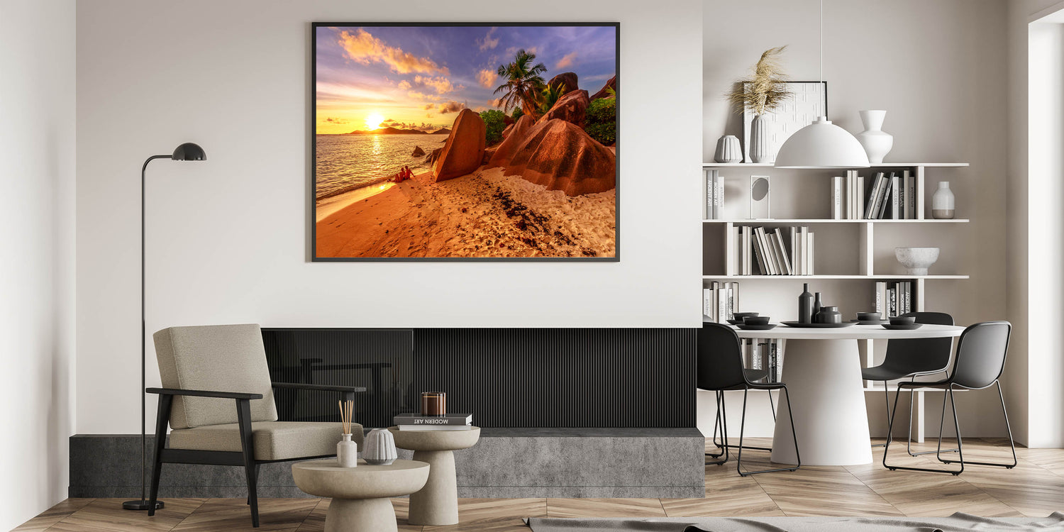 Seychelles Sunset Beach Art – Romantic Island Scenery Wall Print