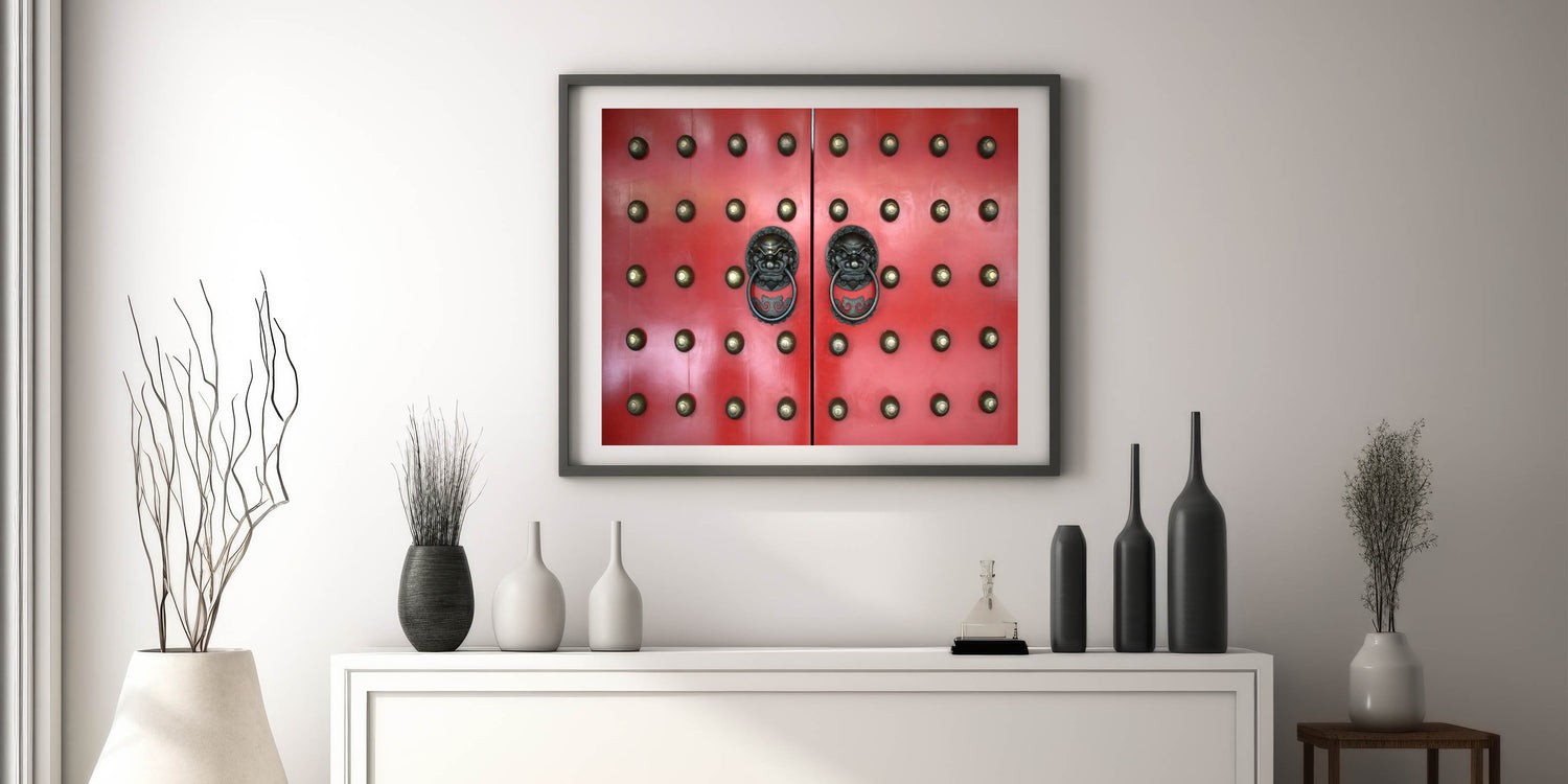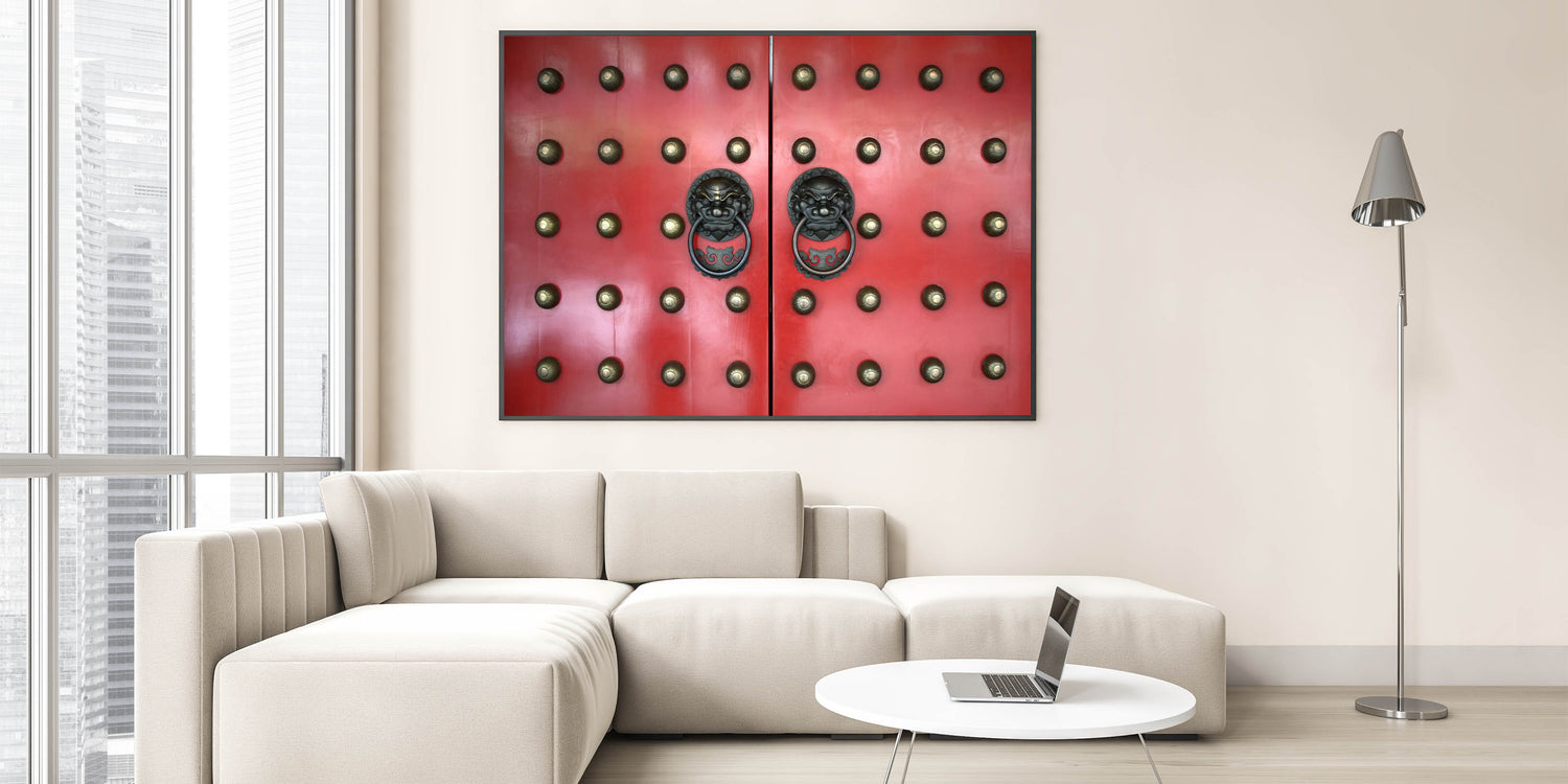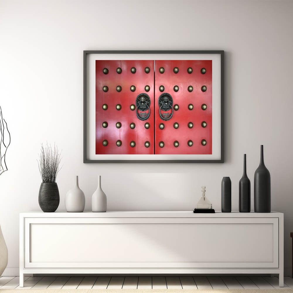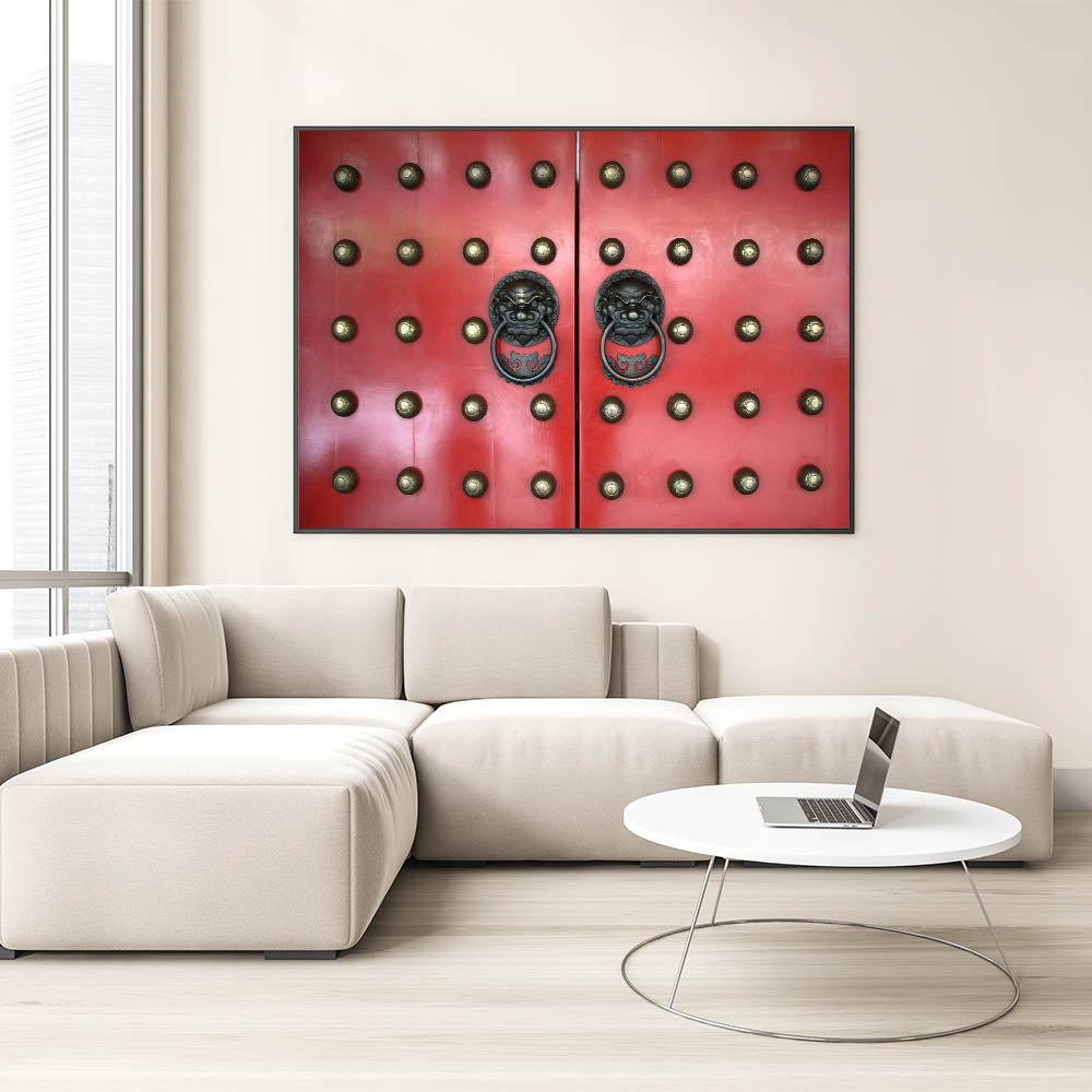 Capture the vibrant essence of Singapore with this stunning wall art featuring an intricate design of a red traditional door with lion-head handles. This unique piece from the Singapore Scenery by Region collection brings a touch of history and culture into your space, perfect for enhancing any modern or contemporary decor.