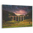 Bring a sense of history and natural beauty into your home with this Slovakia canvas print showcasing a magnificent stone bridge set against a dramatic sunset. The architectural elegance of the bridge contrasts beautifully with the lush green landscape and the vibrant colors of the sky, creating a captivating scene. This Slovakia scenic art is perfect for those who appreciate the combination of nature and historic landmarks in European scenery art.