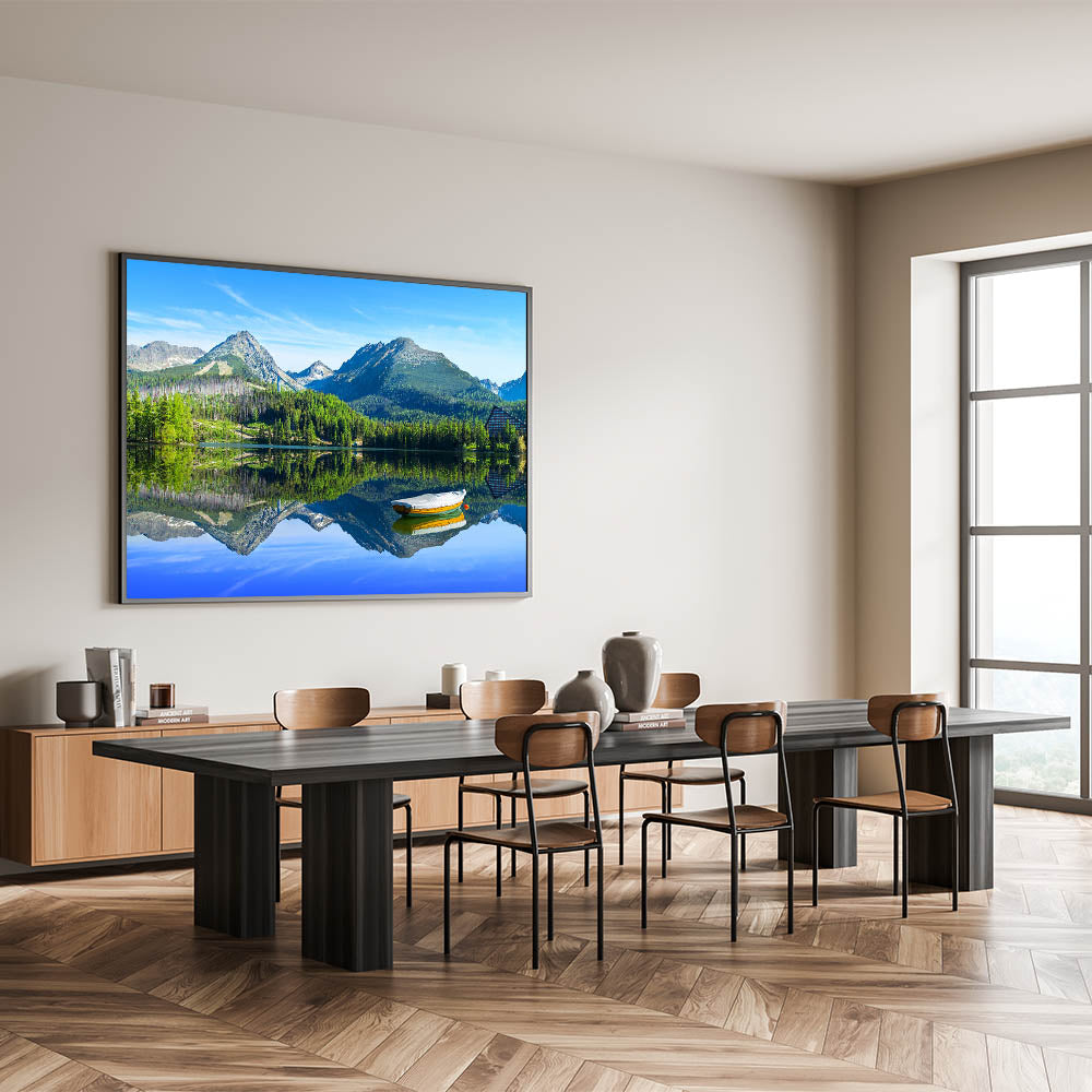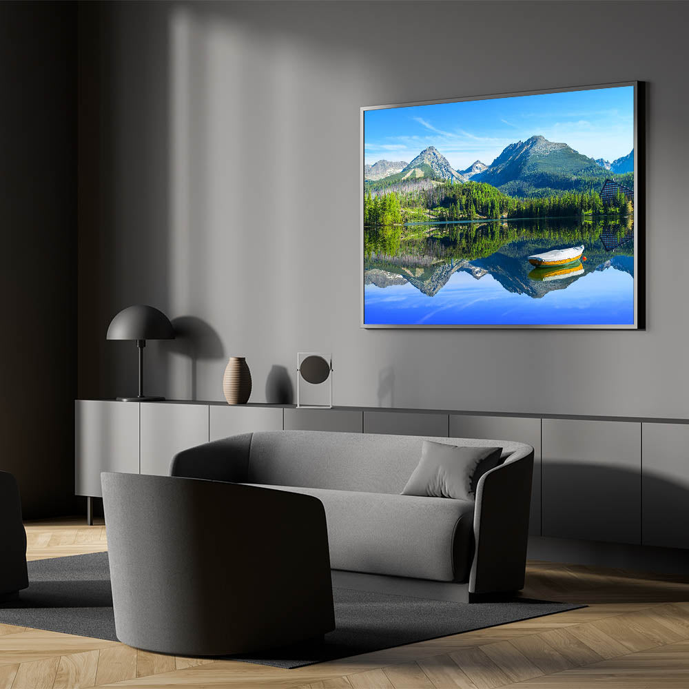 Transform your space with the serene beauty of Slovakia’s High Tatras captured in this stunning Slovakia wall art. The calm waters of the mountain lake, surrounded by lush forests and towering peaks, create a tranquil and captivating scene that will bring a sense of peace and natural wonder to any room. This Slovakia landscape art highlights the pristine reflection of the mountains, making it an ideal choice for lovers of nature and European scenery art.