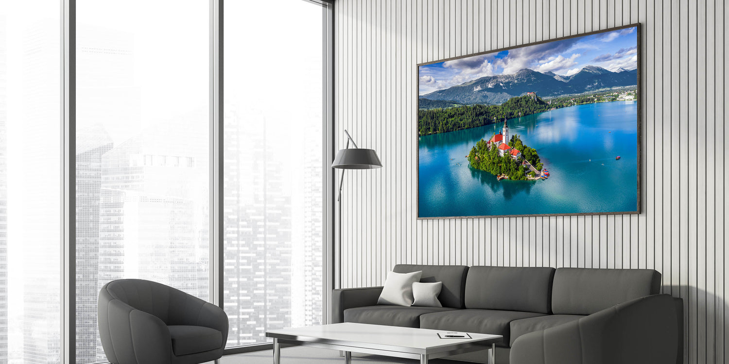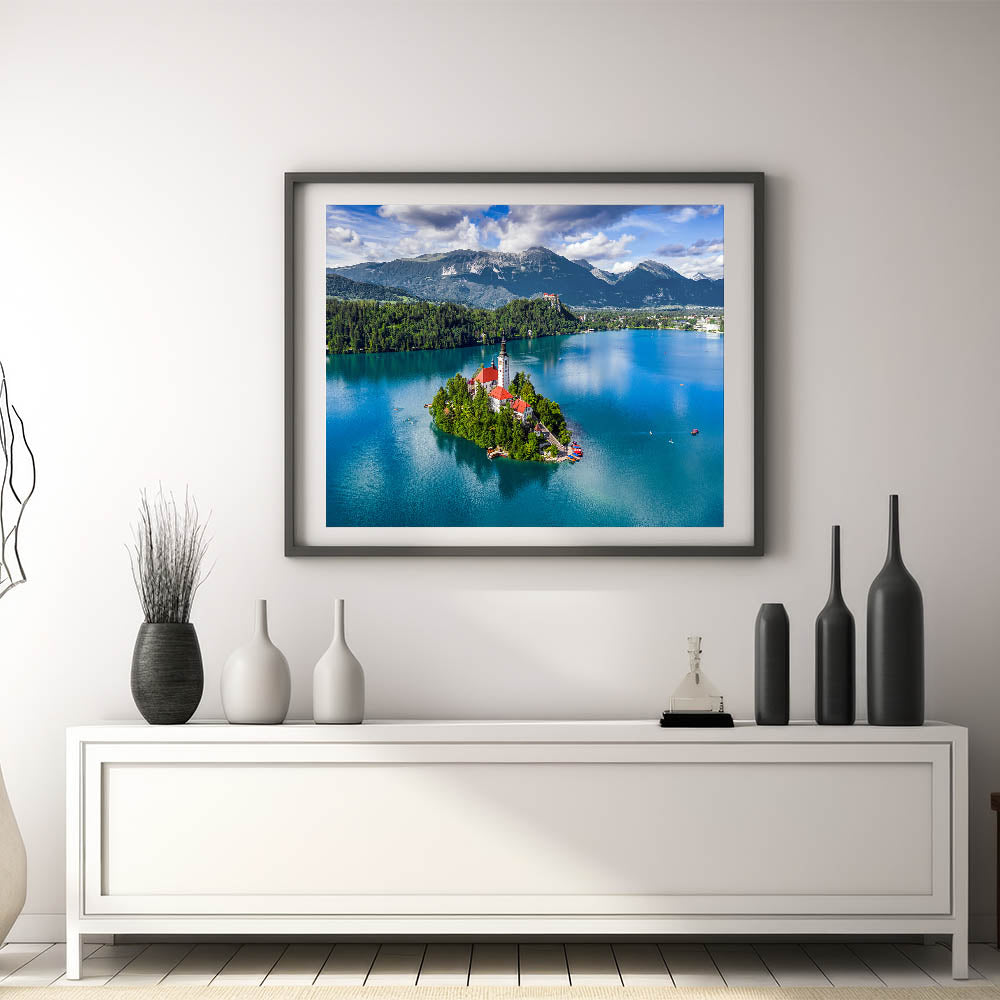 Add this beautiful Slovenia scenery print to your collection and experience the tranquility of Lake Bled every day. A part of our Scenic Slovenia art collection, this piece captures the essence of European scenery, making it an exceptional choice for nature and art enthusiasts alike.