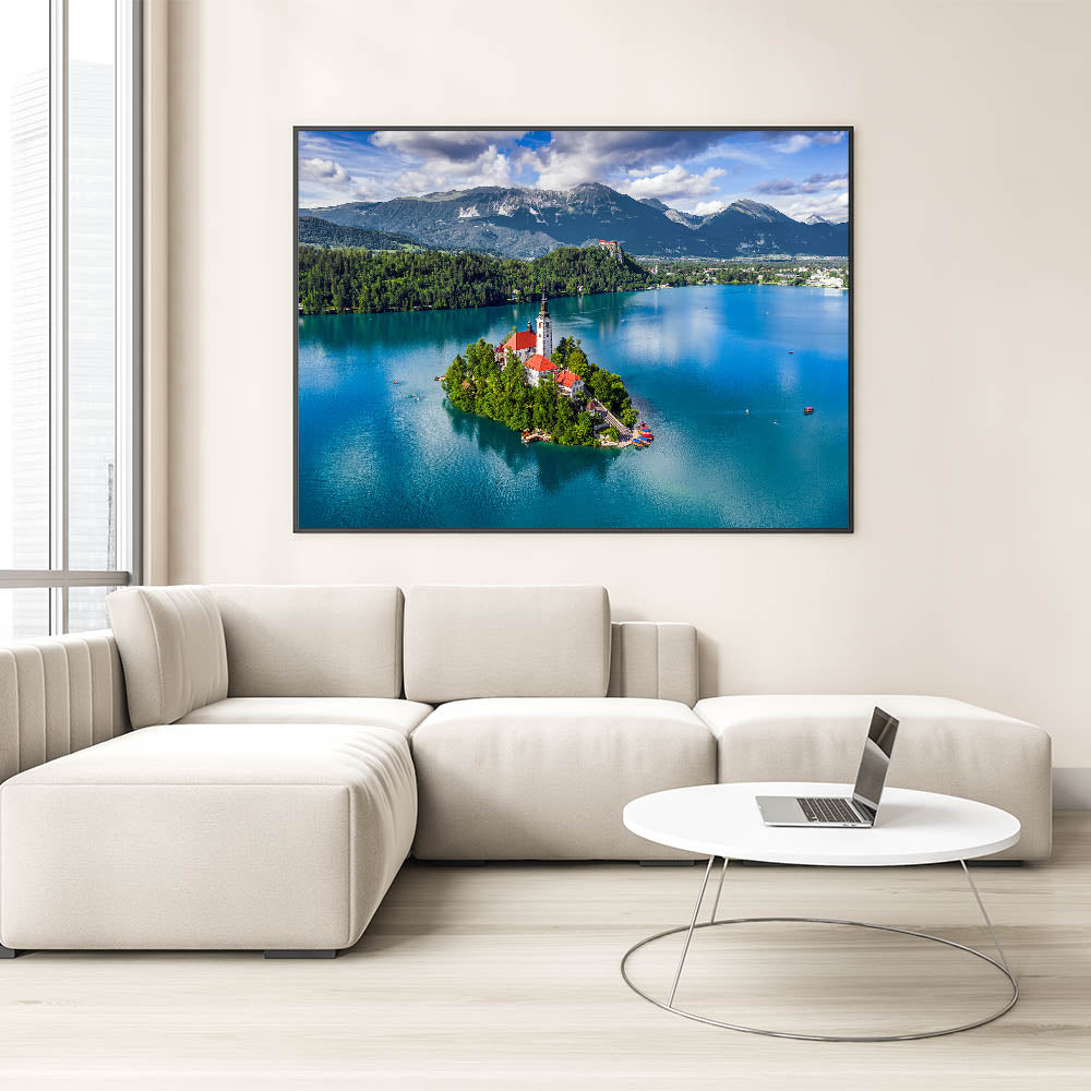 Slovenia Scenery Canvas - Lake Bled Island Aerial View Art