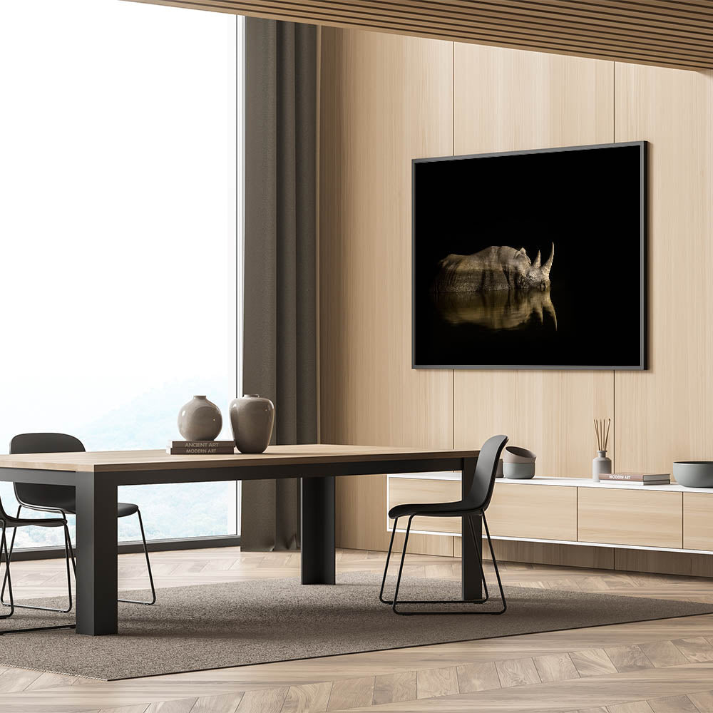 Whether you're passionate about wildlife conservation or simply appreciate the beauty of nature, this striking rhino wall art will make a bold statement in your home or office.