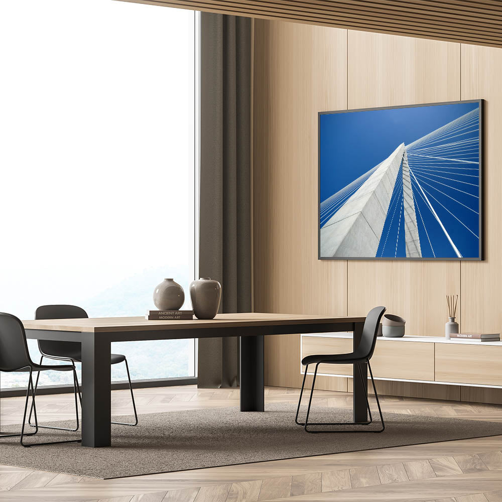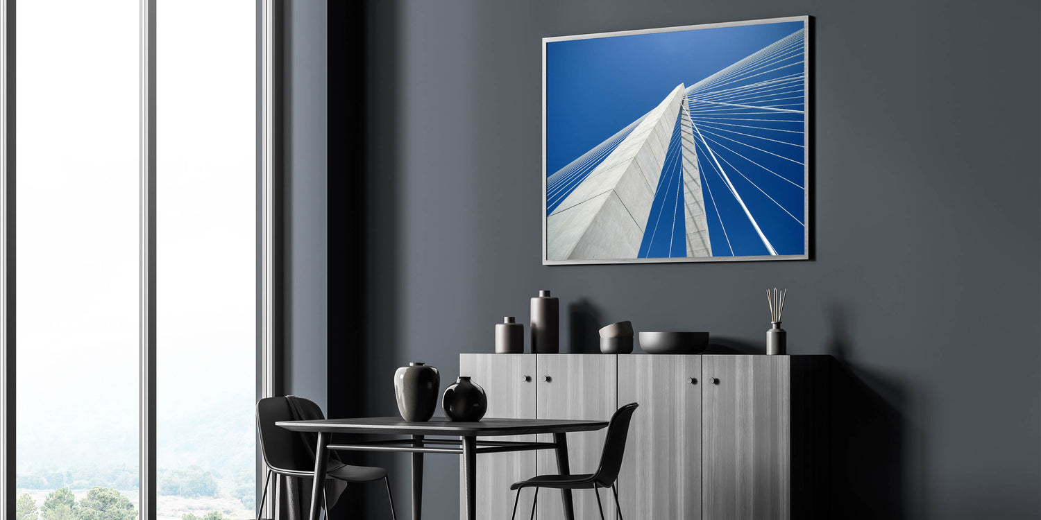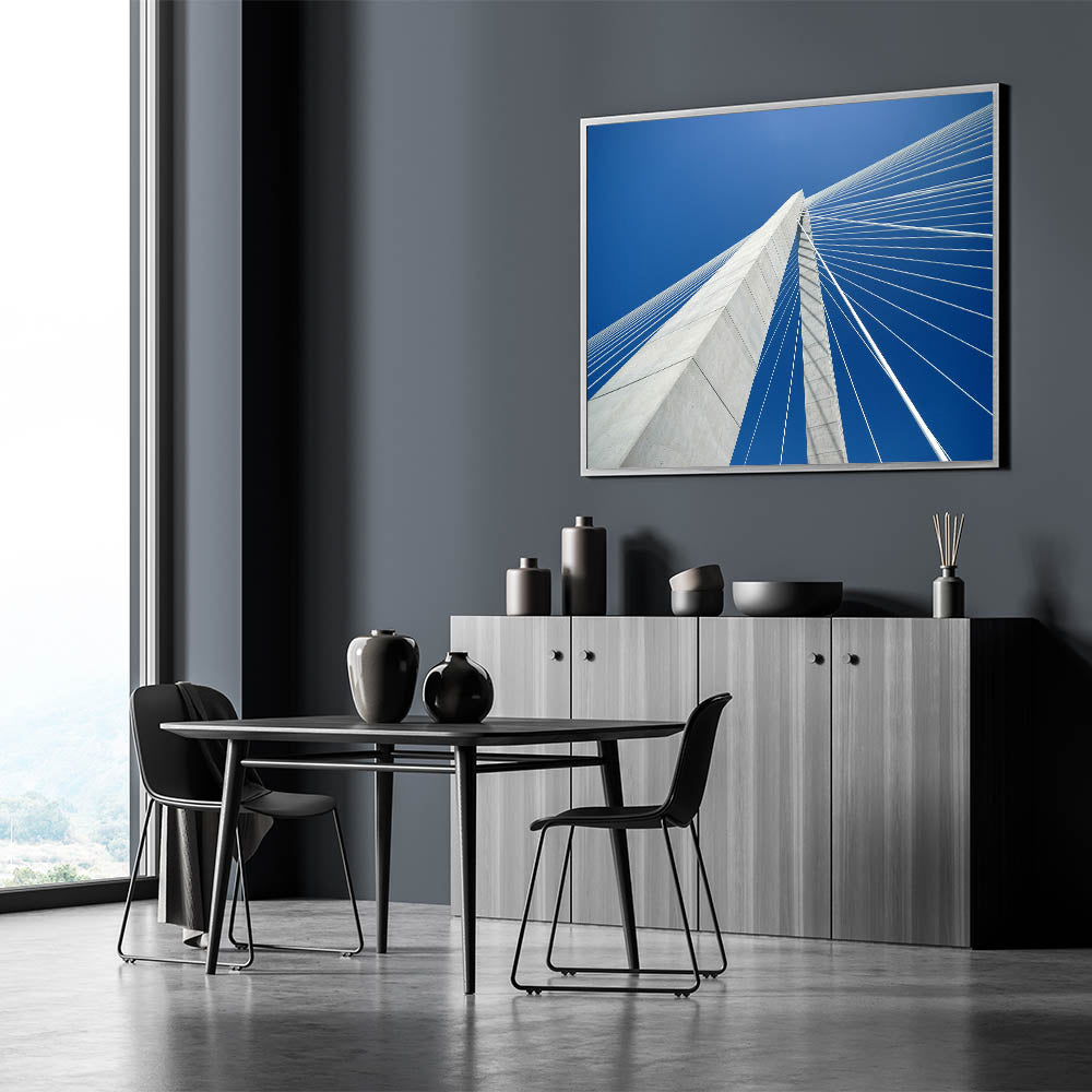 Experience the stunning architecture of Charleston with this breathtaking wall art featuring the iconic Ravenel Bridge. This Charleston SC art print captures the modern elegance of the city's skyline, showcasing clean lines and contemporary design. Perfect for those looking to add a touch of Southern charm and urban sophistication to their home or office decor.