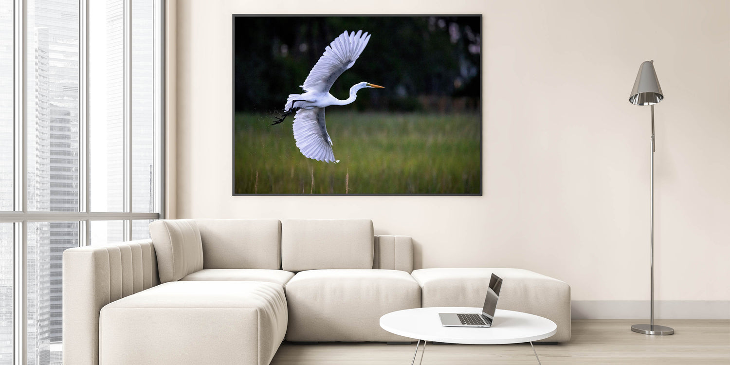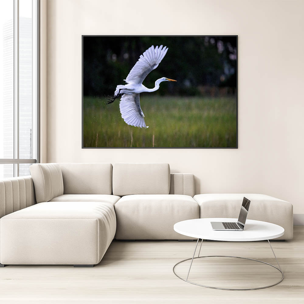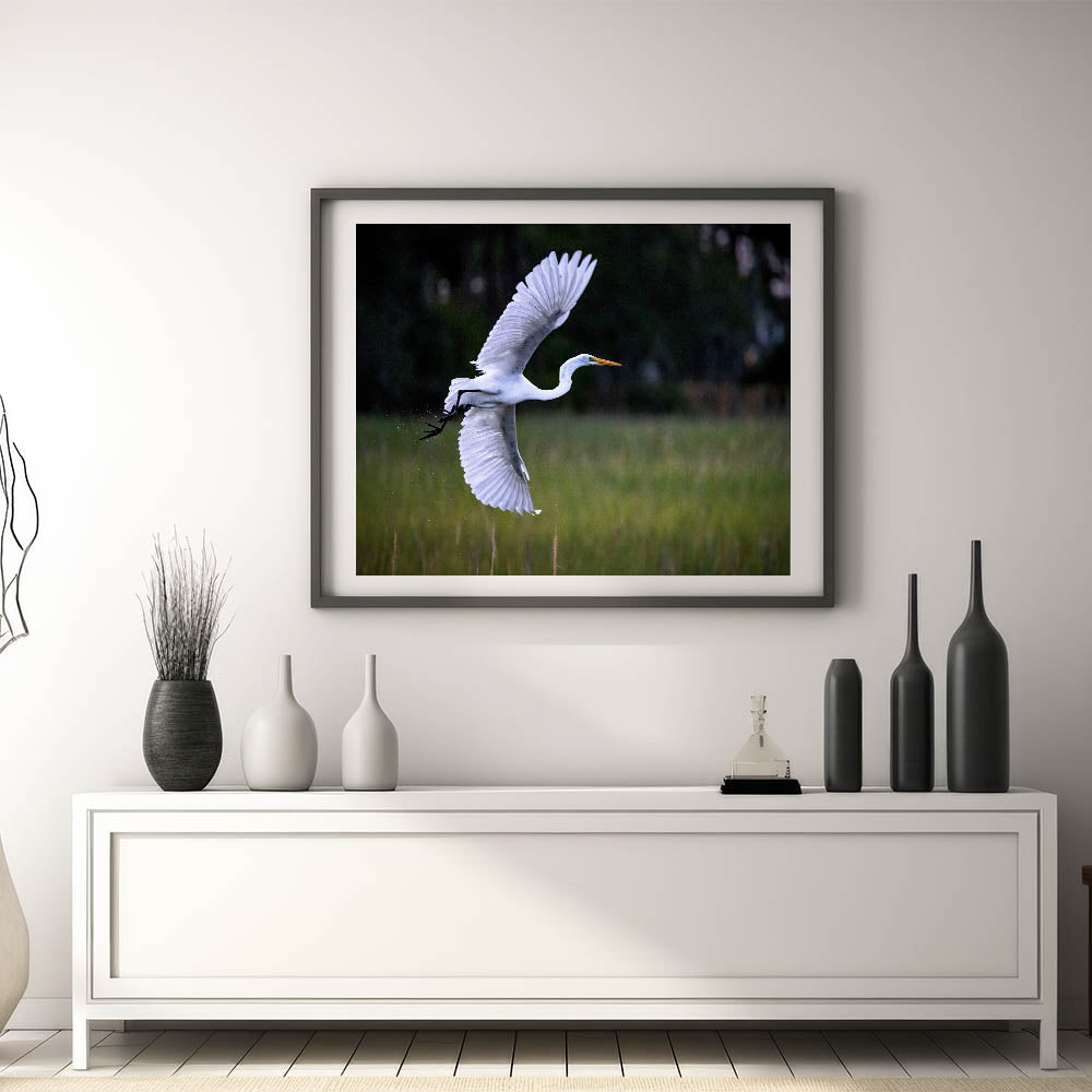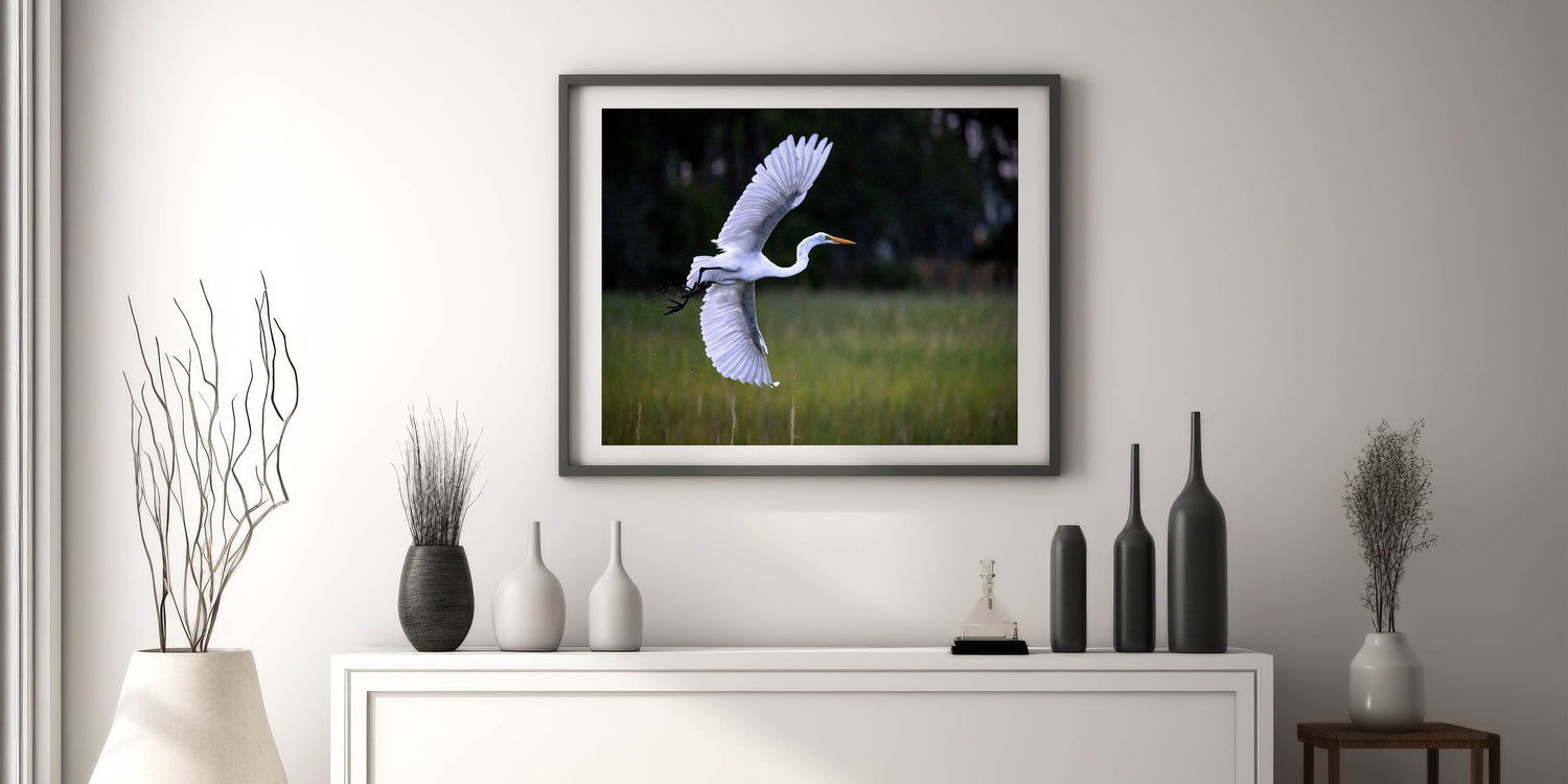 Bring the beauty of South Carolina’s wildlife into your home with this stunning Southern charm wall art, featuring an elegant white bird in flight over a serene landscape. This exquisite piece captures the grace and freedom of nature, showcasing a stunning bird with outstretched wings against a tranquil backdrop. Whether you’re a fan of South Carolina landscapes or looking for a unique Lowcountry art piece, this high-quality art print will add a touch of natural elegance to any room.