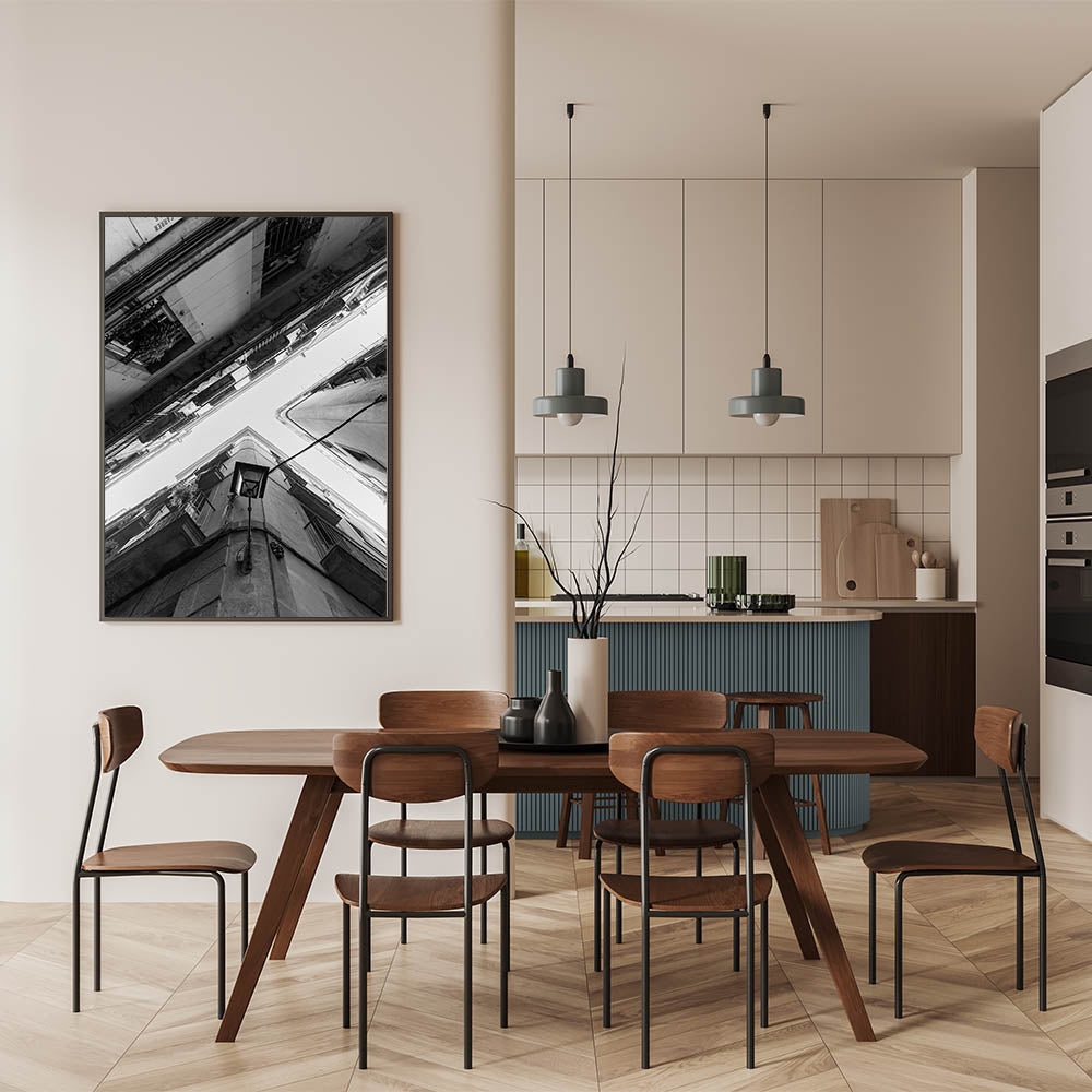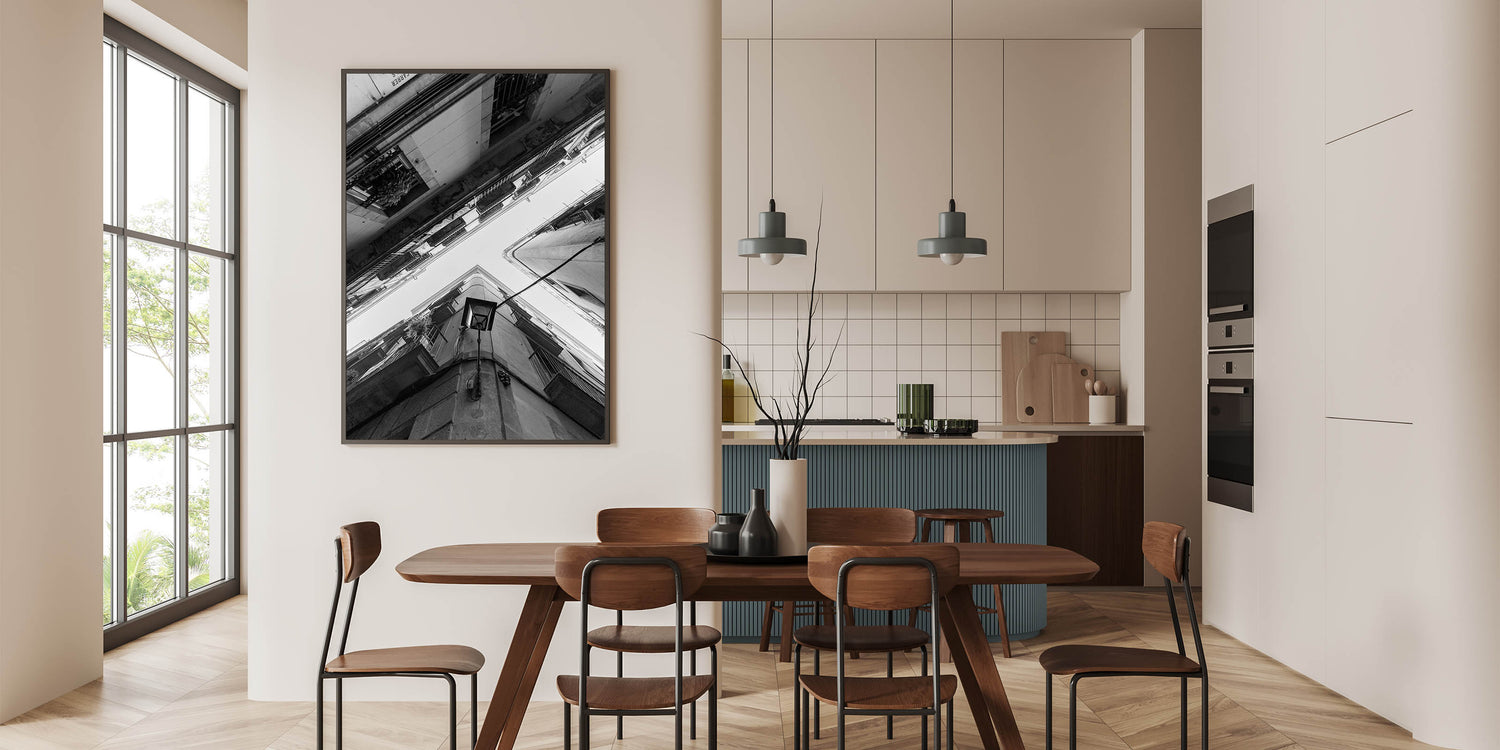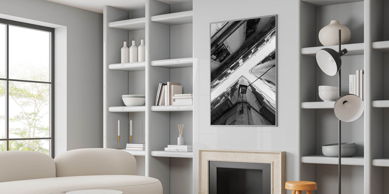 Elevate your space with this stunning piece of Barcelona canvas prints, showcasing a unique upward view of the city’s architecture. The black-and-white design emphasizes the dramatic angles and lines of Barcelona’s urban landscape, creating a modern and sophisticated look. This artwork is perfect for lovers of architecture, design, and urban photography.