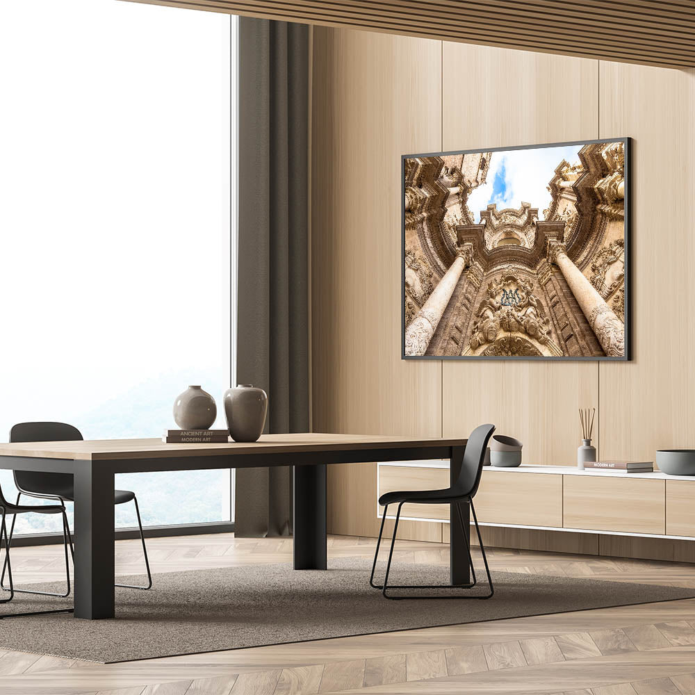 Admire the stunning architectural details of Valencia’s iconic cathedral with this beautifully crafted wall art. This striking exterior shot captures the intricate stone carvings and grandeur of one of Valencia’s most celebrated landmarks. Ideal for anyone who appreciates the beauty of historic architecture, this piece of Valencia wall art adds sophistication and charm to any interior.