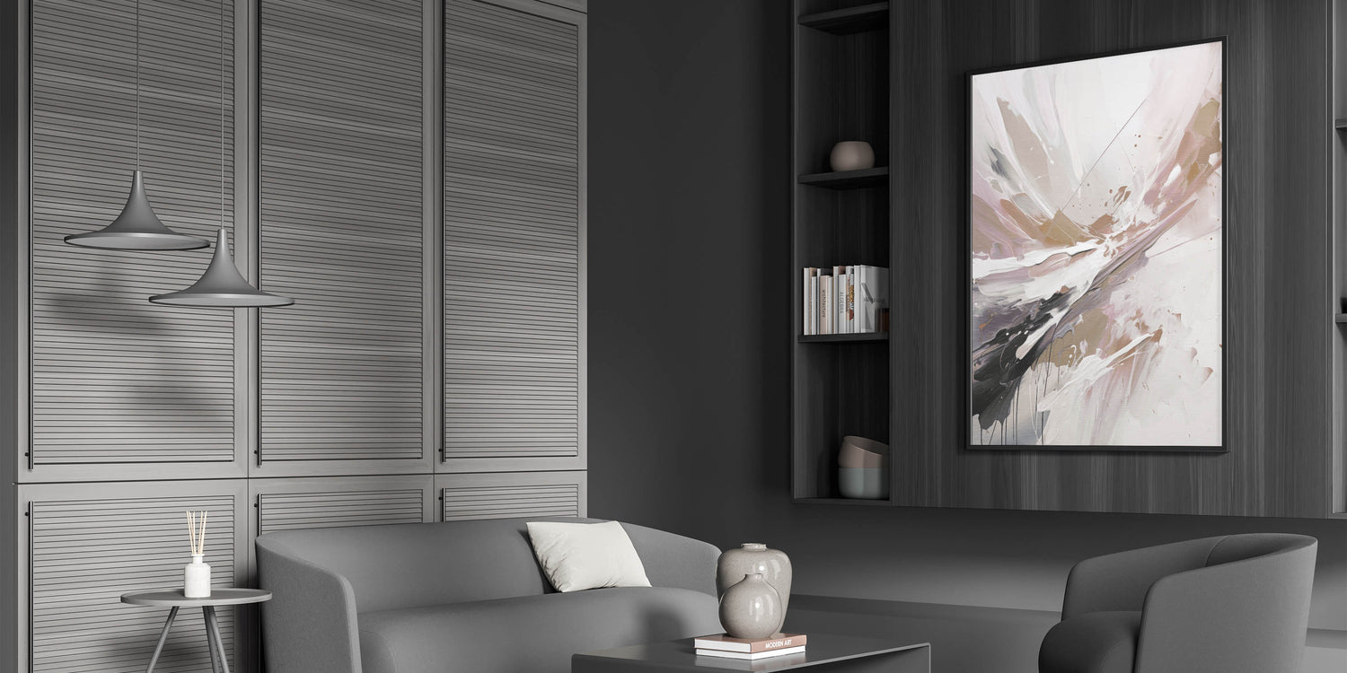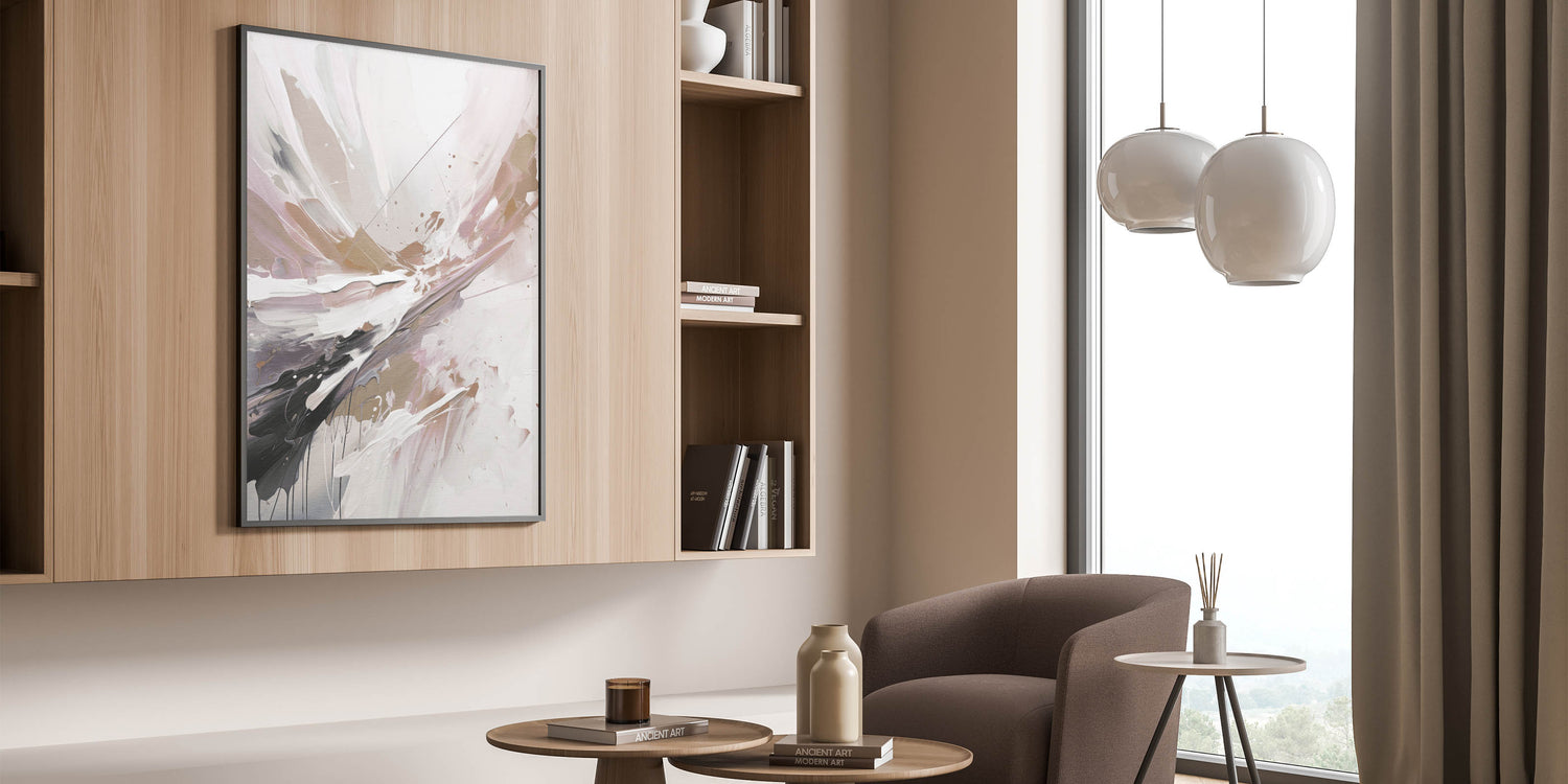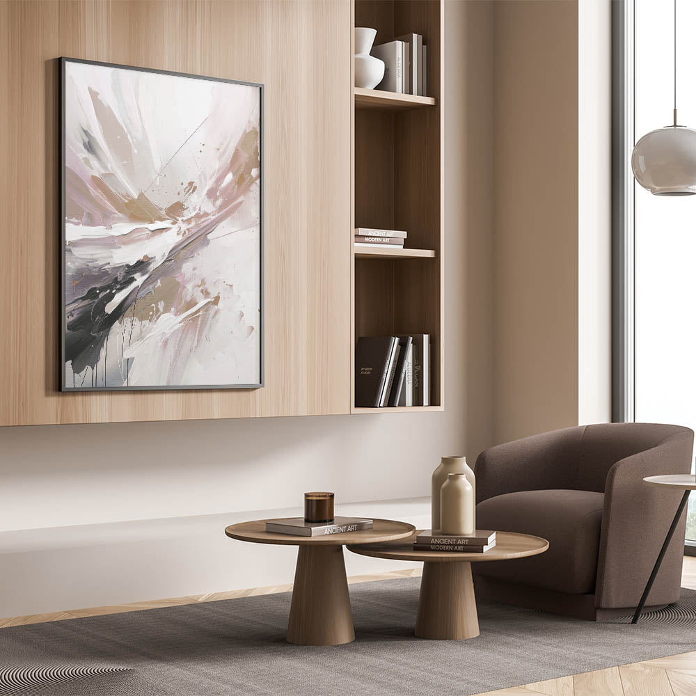 - Design: Modern abstract painting with a floral-inspired splash in a soft, elegant palette.