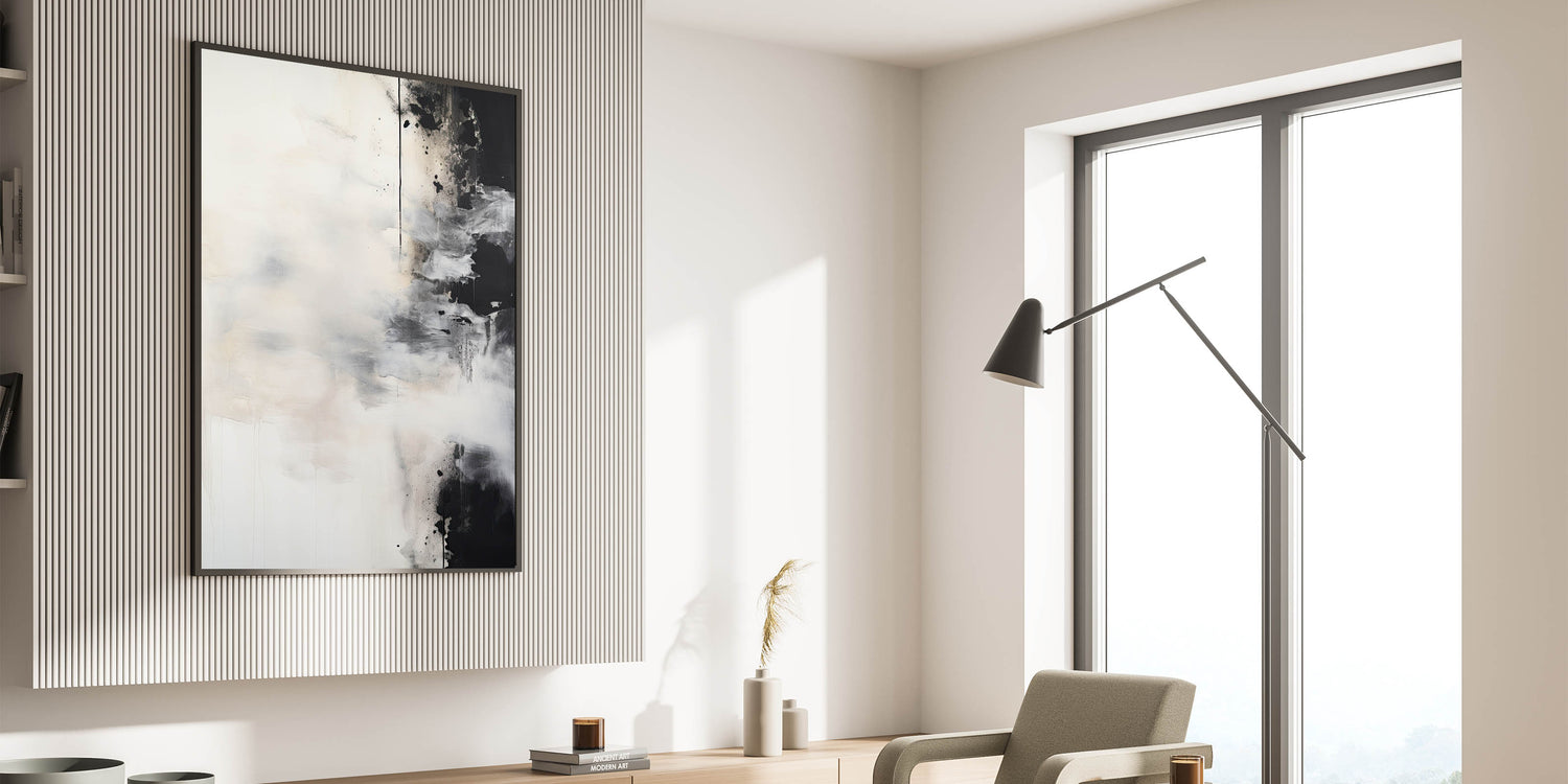 Abstract Minimalist Wall Art - Soft White and Bold Black Brushstrokes