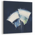 This contemporary abstract canvas delivers high-impact expression with bold motion and contrast. Featuring two sweeping white arcs against a dark navy backdrop, it creates an intense focal point full of raw texture and movement. A powerful piece for modern, edgy interiors.