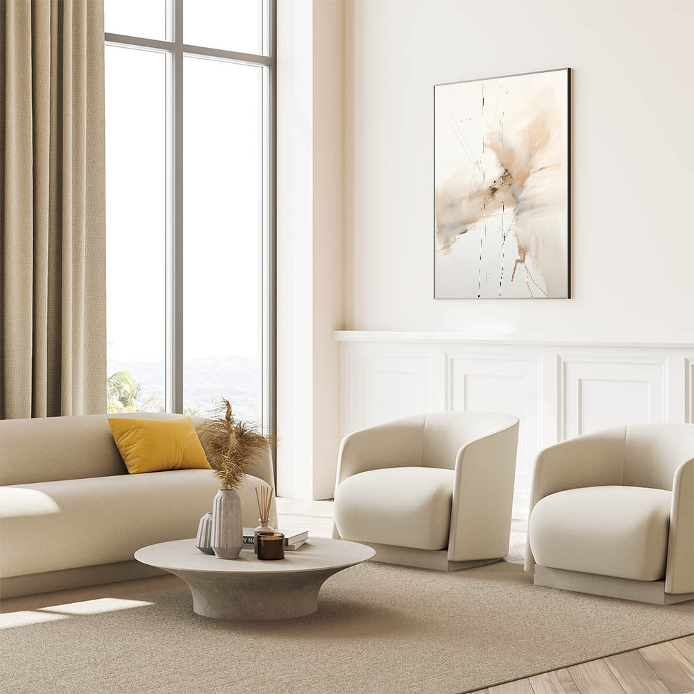 Elevate your interior design with this elegant minimalist wall art, featuring a soothing palette of beige and white with soft, abstract brushstrokes. This modern minimalist artwork creates a calming atmosphere and is perfect for those who appreciate the subtle beauty of contemporary design. The gentle flow of lines and delicate tonal contrasts make it an ideal addition to any minimalist or modern space, from living rooms to bedrooms and offices.