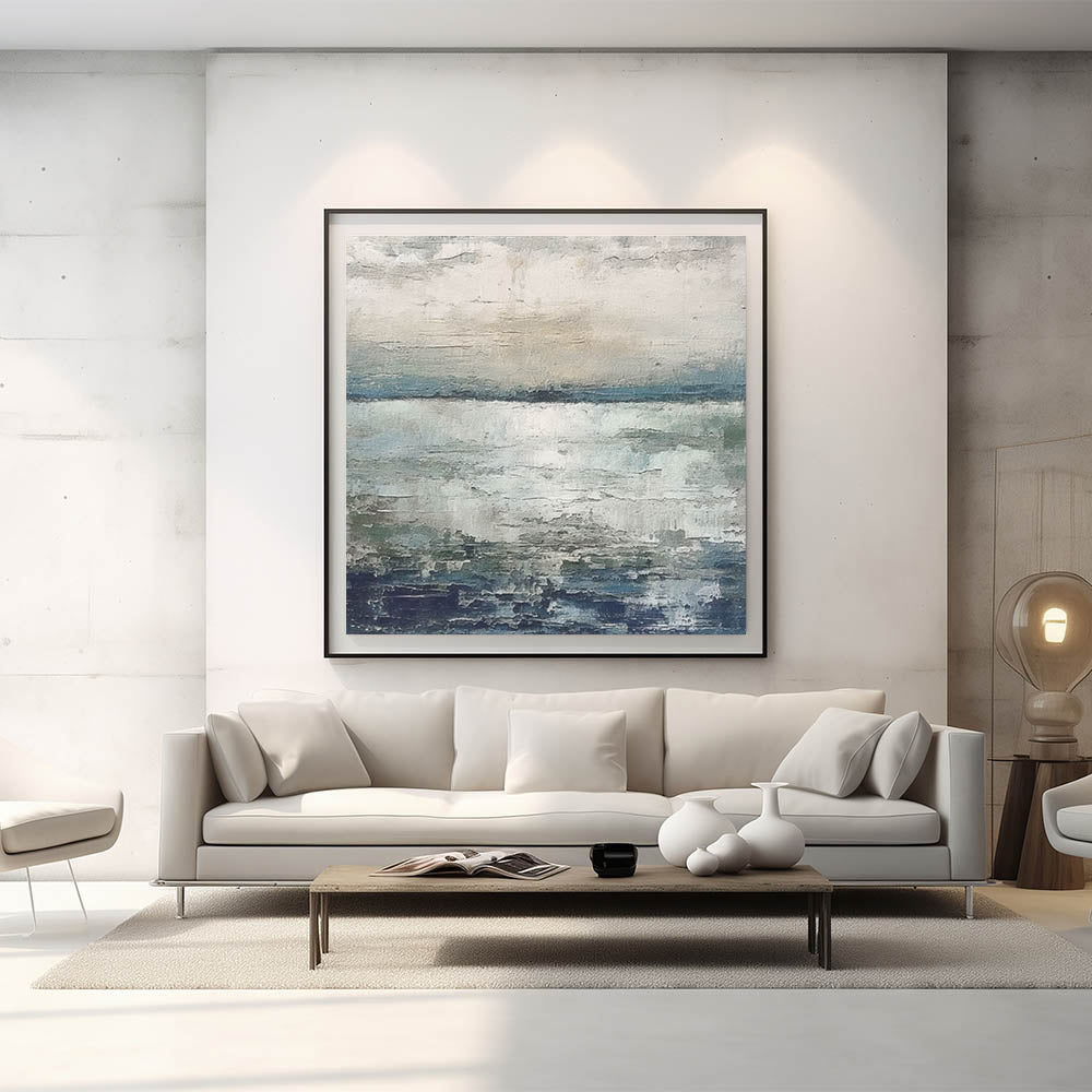 Bring the beauty of calm waters into your home with this landscape abstract canvas art. Featuring a harmonious blend of blue, gray, and beige tones, this piece captures the peaceful essence of a coastal horizon, inviting tranquility into any room. The textured finish and muted colors make it perfect for modern and coastal decor styles, adding an elegant touch to your space.
