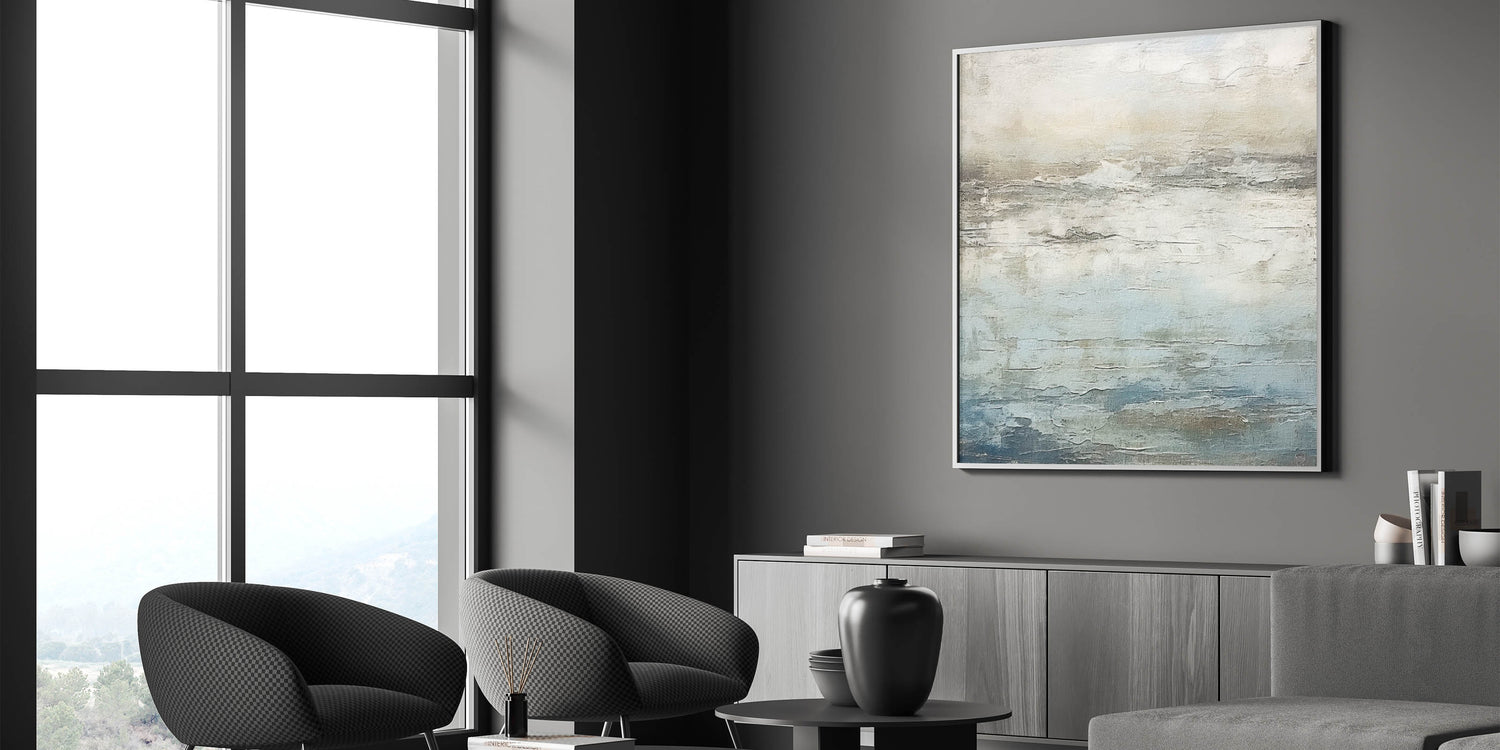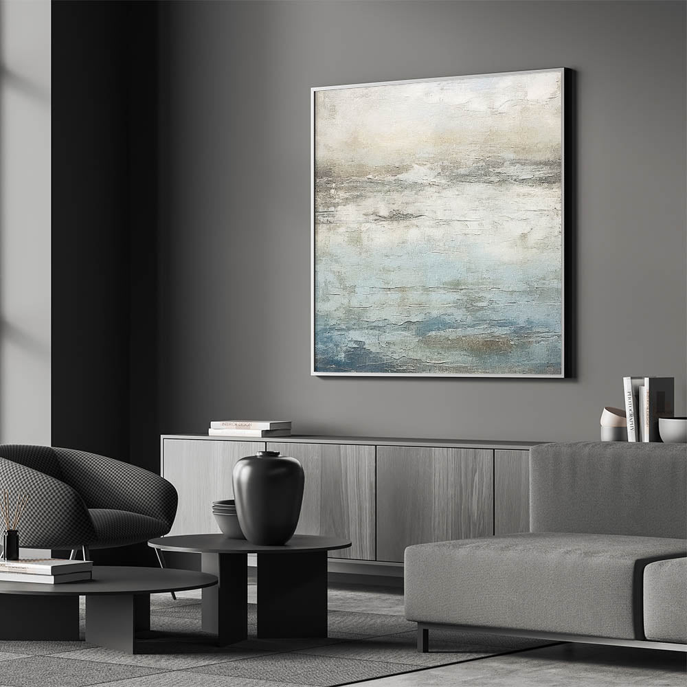 Invite the calming essence of the sea into your space with this pastel sky and sea abstract art. Featuring delicate shades of blue, beige, and soft grays, this artwork captures the serene beauty of coastal horizons, making it a perfect fit for coastal, minimalist, and modern decor styles. This piece brings a gentle, soothing atmosphere to any room, reminiscent of peaceful days by the ocean.