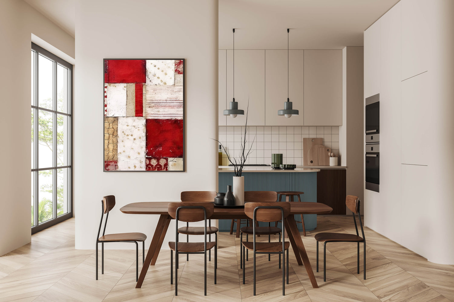 Enhance your decor with this striking patchwork design, perfect for those who appreciate unique, textured artwork. Choose from multiple formats to suit your personal style and decor needs.