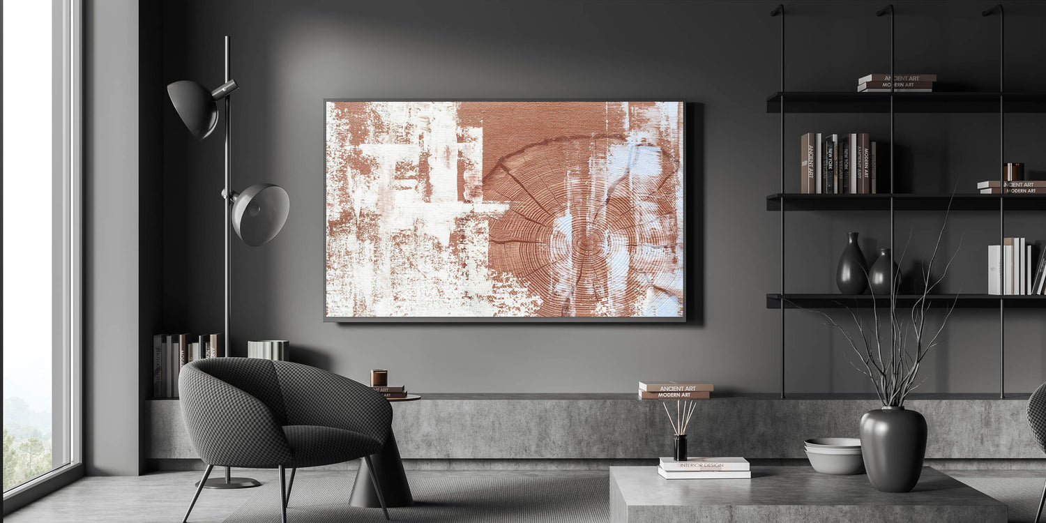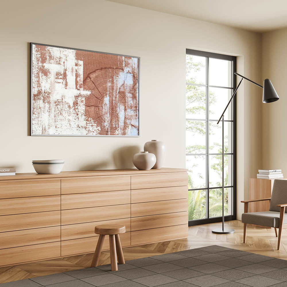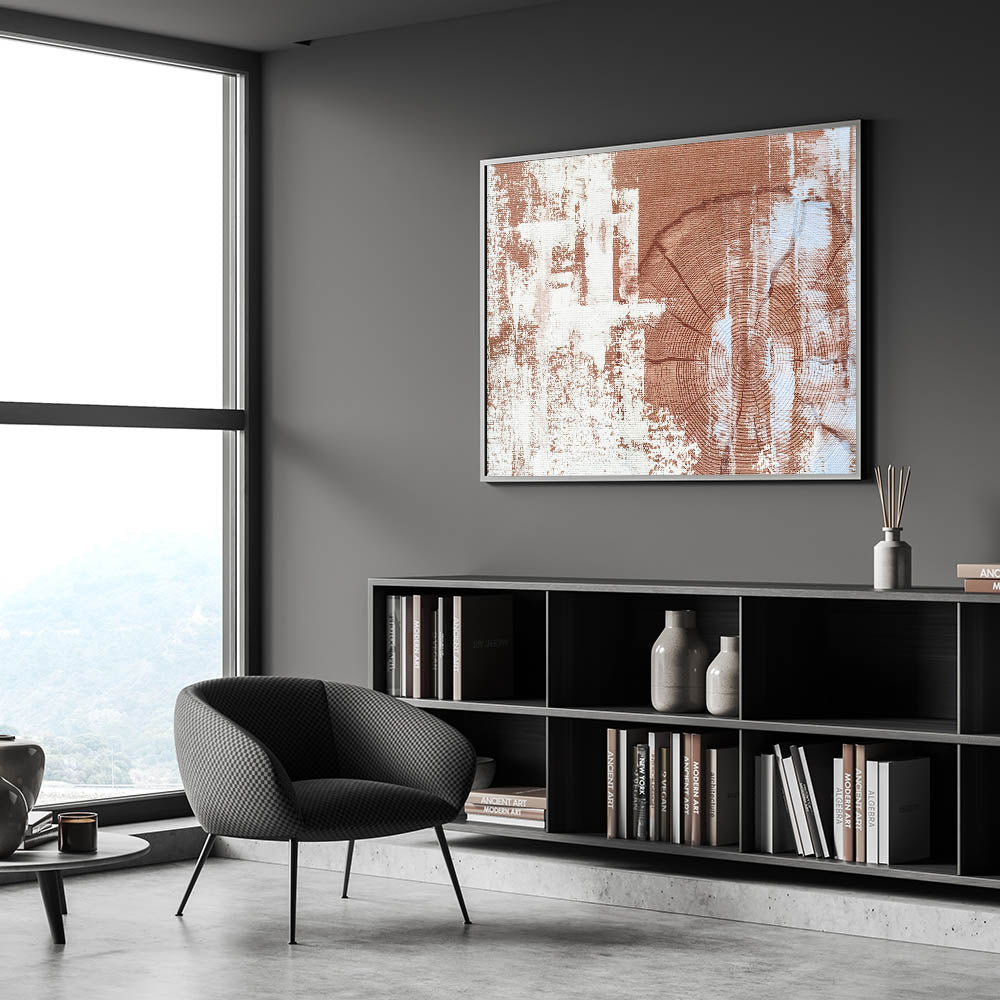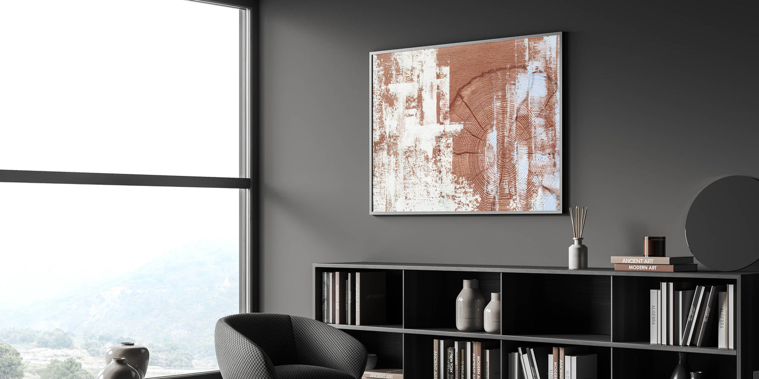 Bring the warmth and charm of natural textures into your home with this rustic woodgrain abstract art. The design features detailed woodgrain patterns in earthy shades of brown and cream, creating a harmonious blend of natural and contemporary elements. The textured background enhances the organic feel of the piece, making it a perfect addition to any modern, rustic, or earthy-themed decor.