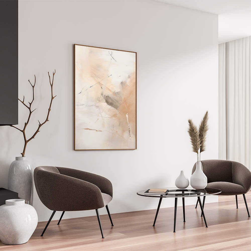 Introduce a sense of calm to your space with this soft abstract brushstroke art, featuring soothing tones of beige, peach, and faint gray accents. The gentle brushstrokes and subtle, flowing lines evoke a feeling of lightness and tranquility, making it an ideal piece for modern and minimalist interiors. This artwork’s organic movement and soft colors blend seamlessly, bringing an understated elegance to any room.